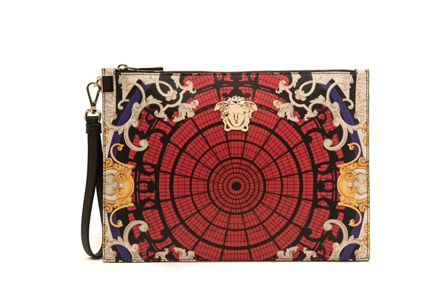 A “Ornamental Collection” é composta por luxuosas peças para homem e senhora. Um conjunto de carteiras da linha Pallazzo, ténis e uma seleção de têxteis, cuidadosamente decorados com um padrão especial em tons de vermelho, que combina os carateres da Versace com a imagem simbólica da cúpula da Galleria Vittorio Emanuele II.
