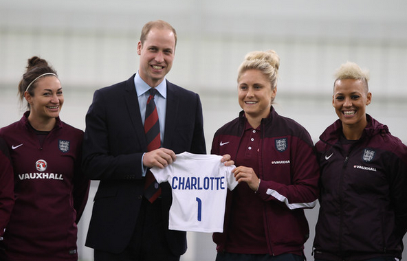 No encontro com as atletas William recebeu um presente para a filha, a princesa Charlotte, que nasceu no passado dia 2 de maio. A seleção ofereceu uma camisola para a bebé com o seu nome impresso.