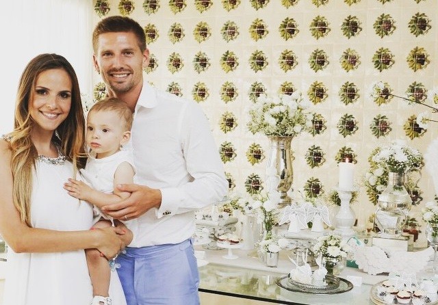 Dias depois de ter pedido a companheira em casamento, Adrien Silva viveu outro dia especial: o batizado do filho, Santiago, que completou um ano no passado mês de maio.