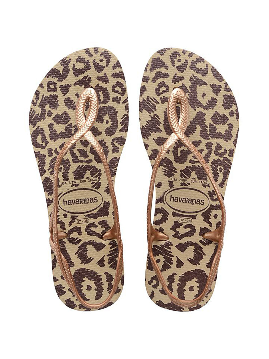Com padrão animal ou com detalhes em tons metálicos, as Havaianas Luna são ideais para usar num passeio na cidade ou numa ida à praia.