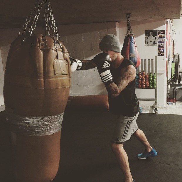 David Beckham, que se retirou dos relvados há dois anos, mostrou como mantém a boa forma. O ex-jogador de futebol, de 40 anos, partilhou uma imagem no Instagram, onde surge a treinar boxe. “Braços a tremer, mãos quase a cair. Obrigado, Pete. Shake de proteína e banho de gelo… Grande treino!”, escreveu na legenda.