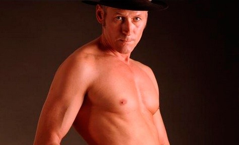 Wagner, de 52 anos, aparece em cartazes e outdoors espalhados por Copenhaga completamente nu, apenas com alguns acessórios de cowboy, como um chapéu e um coldre com uma arma à cintura.