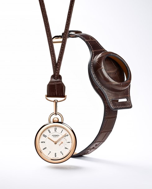 Esta peça remete à história da maison, quando em 1912 Jacqueline Hermès recebeu do pai um relógio de bolso – desenhado para ser usado também no pulso – para que Jacqueline, criança na época, fosse capaz de usá-lo quando andava a cavalo.