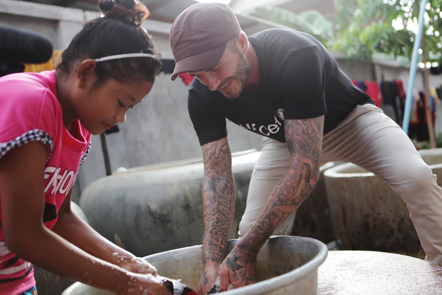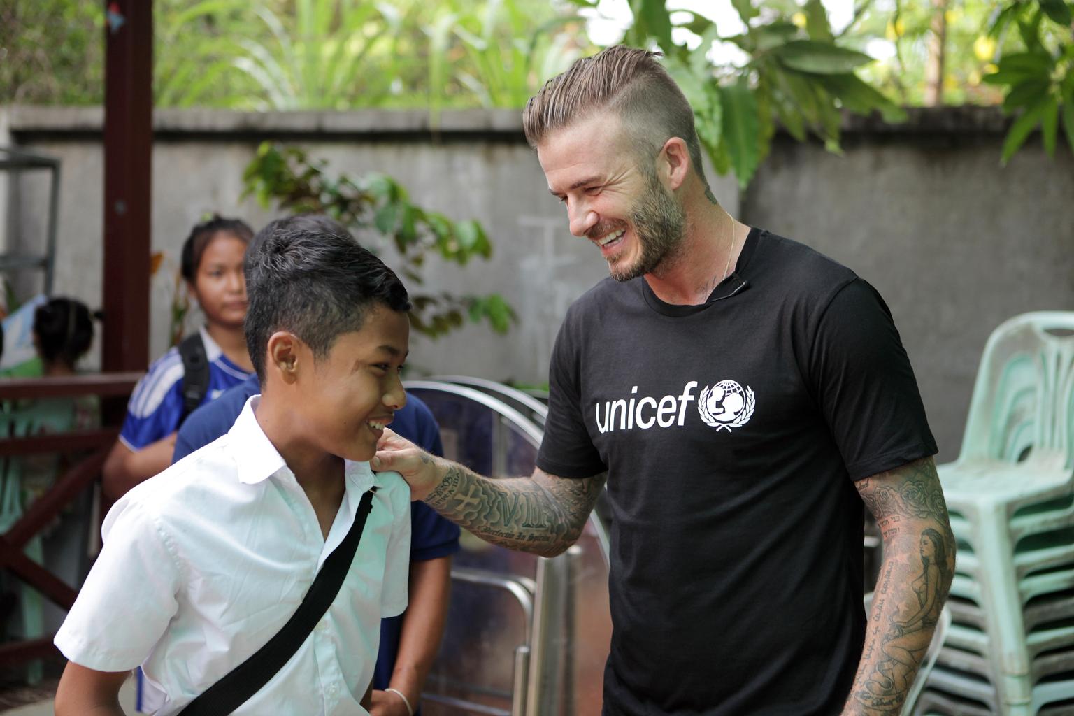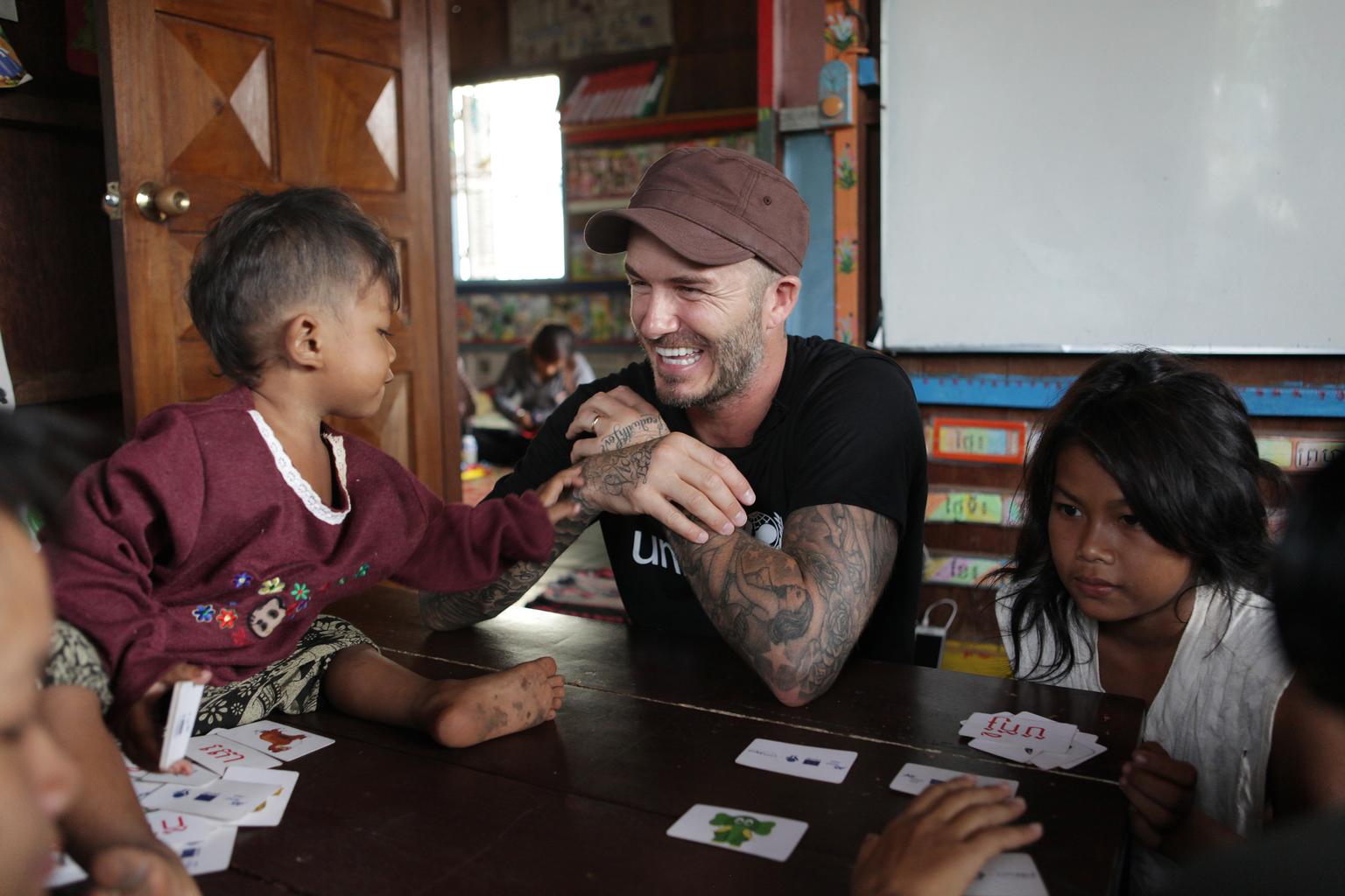 O antigo jogador de futebol é embaixador da boa vontade para a infância da UNICEF e visitou o Combodja. Naquele país, David Beckham contactou com várias crianças.