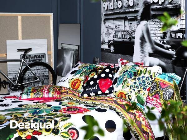 Conhecida pelo vestuário alegre e irreverente, a Desigual Living alia agora esse mesmo espírito ao setor “home & decor”, onde se incluem acessórios de decoração e vestuário que vão das roupas de cama e pijamas coloridos aos roupões e toalhas de banho, passando pelas mantas e almofadas de sala ou pelos aventais e toalhas de mesa e, ainda, toalhas de praia e acessórios de piscina. Sempre com cores alegres e padrões festivos.