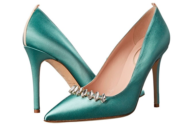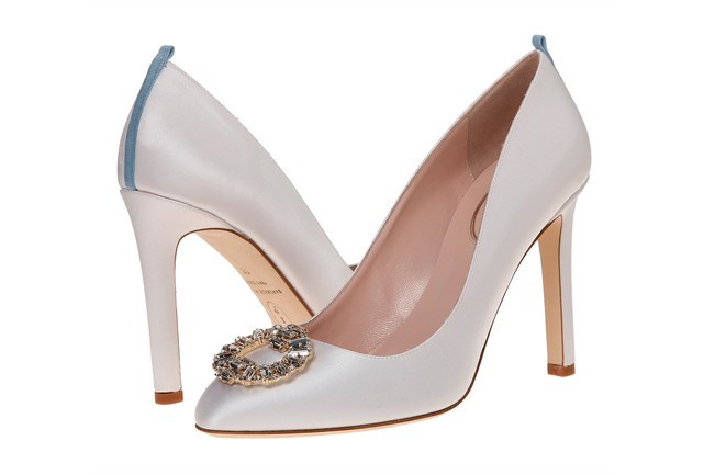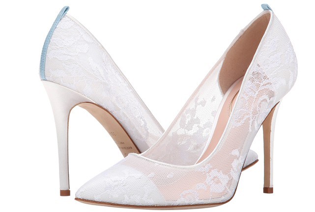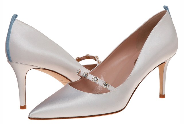 Na colecção de sapatos podemos ver peças feitas com cetim e renda, em branco e marfim, com adornos de jóias, além de modelos com azul, para dar sorte, como manda a tradição no dia de casamento.