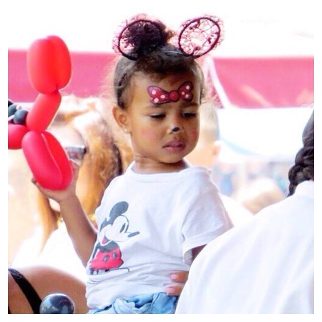 North West mascarou-se de Minnie. Kim, que grávida do segundo bebé, não saiu do lado da filha e até usou orelhas de Minnie na cabeça.