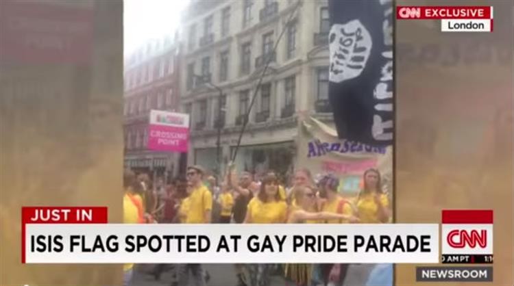 A repórter afirmou em direto ter visto uma bandeira do Estado Islâmico. “Um homem vestido de preto e branco está a abanar uma bandeira que parece ser uma imitação da bandeira do Estado Islâmico, a bandeira preta e branca com letras. Não é árabe, parece mesmo que são apenas símbolos sem qualquer sentido a tentar imitar árabe, mas é óbvio que se trata de uma bandeira do Estado Islâmico”, referiu. “Parece que fui a única jornalista a reparar neste pormenor”, acrescentou.
