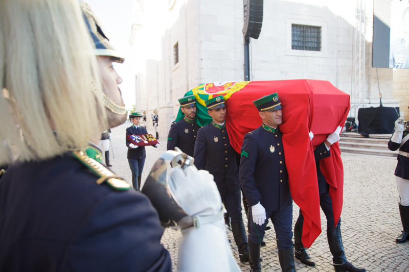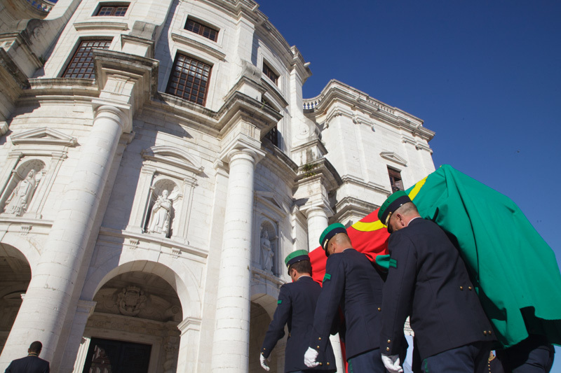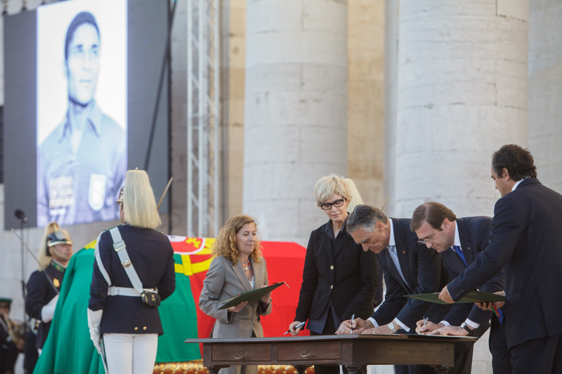 A cerimónia de trasladação terminou no Panteão Nacional, onde estiveram presentes as principais individualidades do Estado português – Presidente da República, Cavaco Silva, Presidente da Assembleia da República, Assunção Esteves, e Primeiro-ministro, Pedro Passos Coelho. Dulce Pontes cantou o hino nacional e Rui Veloso interpretou dois temas: “África” e “Nunca me esqueci de ti”.