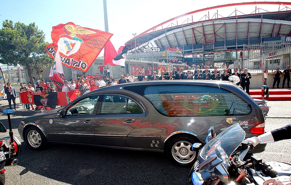 O cortejo passou pelo Estádio da Luz, onde fez uma breve paragem e foi aplaudida por alguns adeptos e elementos da direção do Benfica, nomeadamente pelo presidente Luís Filipe Vieira. Seguiu depois para o Parque Eduardo VII, onde a urna com os restos mortais de Eusébio foi transferida do carro funerário para o armão militar.
