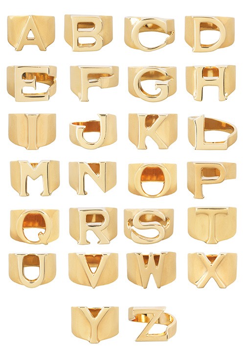 As 26 letras do alfabeto deram origem a uma coleção de anéis da Chloé. São dourados e permitem um infinito leque de possibilidades na construção de palavras. As peças são em ouro e com um design minimalista.