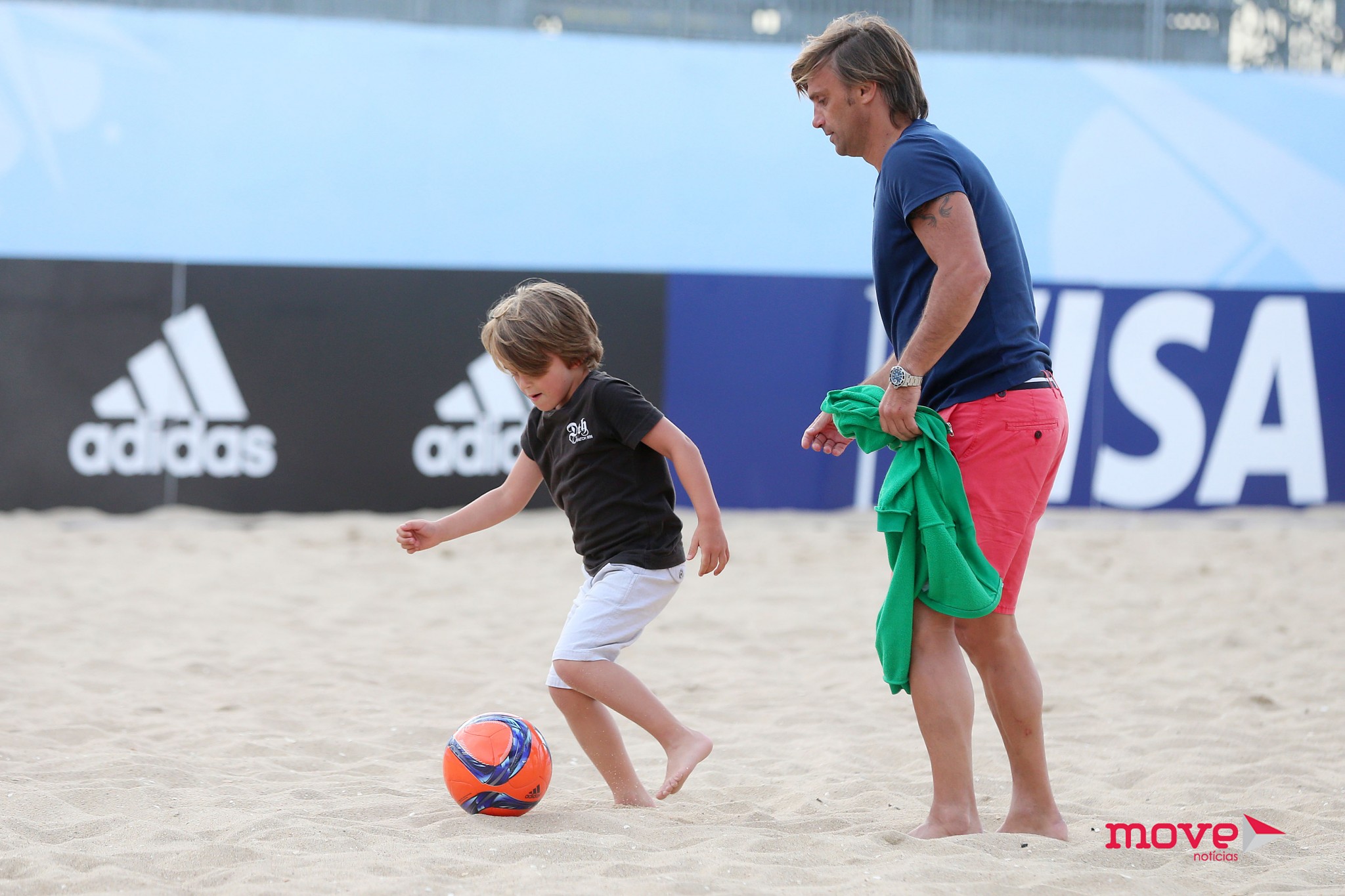 O diretor da Federação Portuguesa de Futebol dedicou a tarde do último sábado, dia 4, aos filhos mais novos. João Pinto foi assistir ao jogo amigável de futebol de praia, que reuniu várias figuras públicas, em Espinho, mas quase só teve olhos para João, de 9 anos, e Diogo, de 5, fruto do casamento com Marisa Cruz.