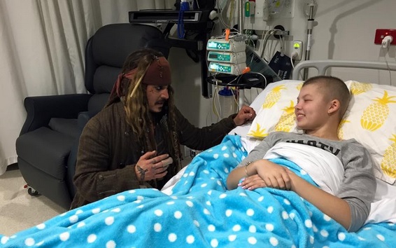 Johnny Depp visits children in hospital dressed as Captain Jack Sparrow.