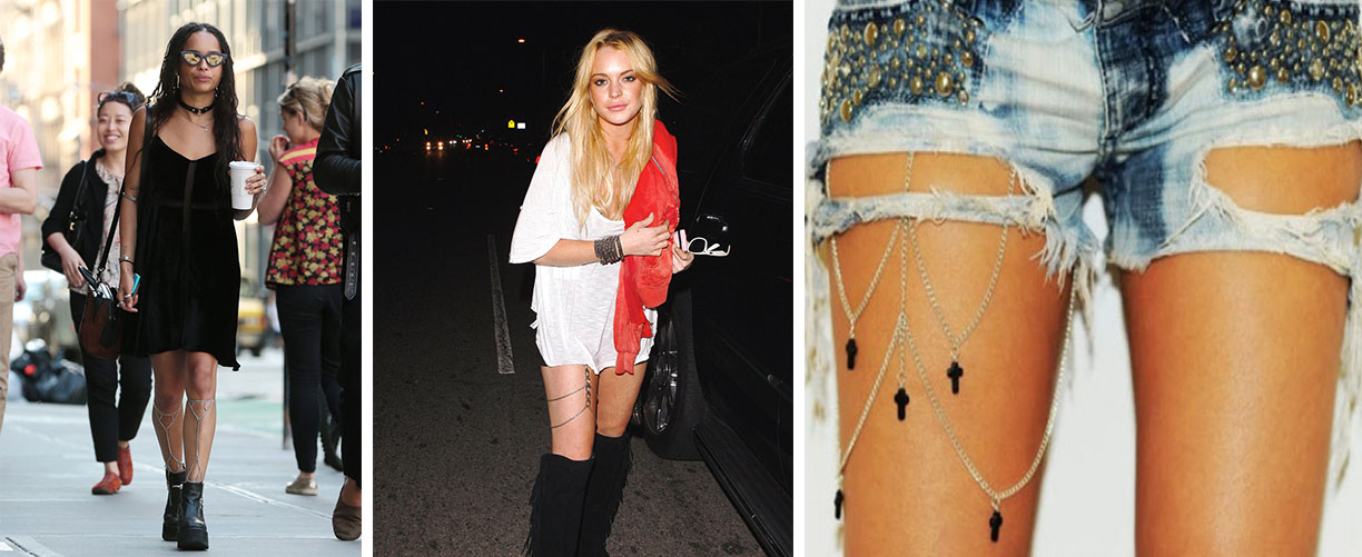 Em todas as estações surge um novo acessório, e a moda tem esta capacidade maravilhosa de estar sempre a surpreender-nos. Depois da body chain (corrente de corpo), este verão o hit é o leg chain, ou seja, uma corrente na perna.