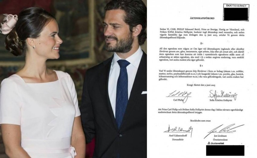O jornal sueco “Aftonbladet” divulgou o contrato pré-nupcial assinado pelo príncipe Carlos Filipe e Sofia Hellqvist.