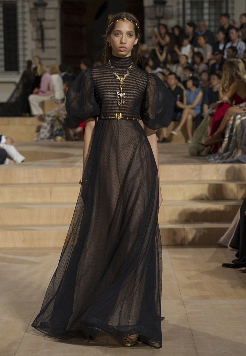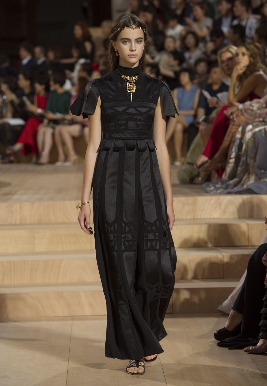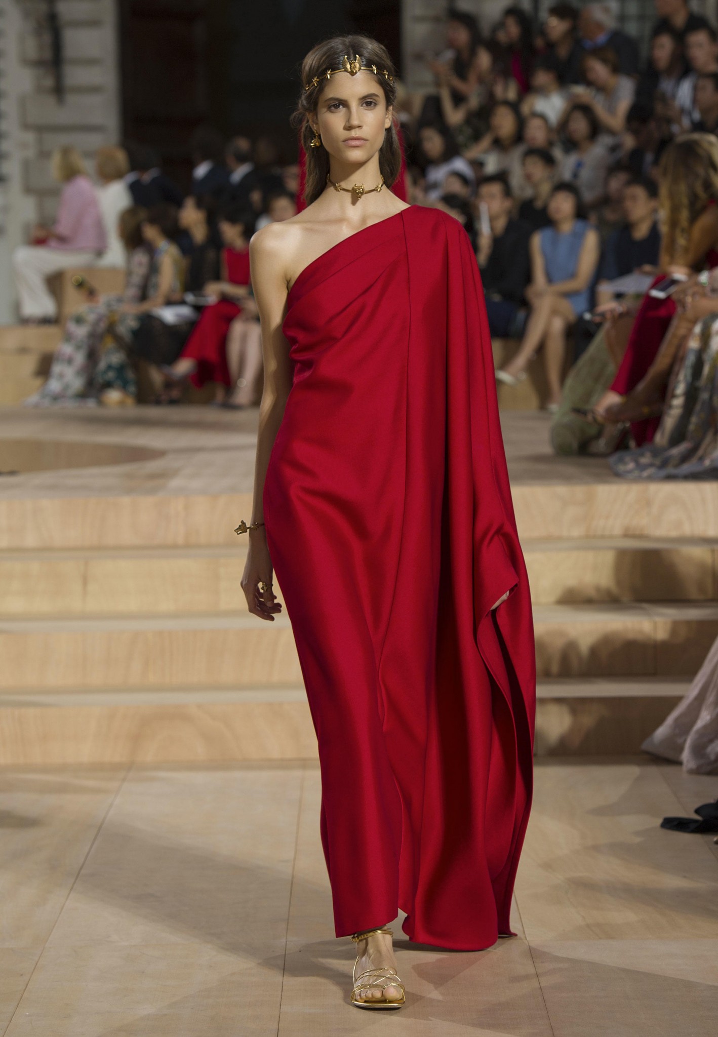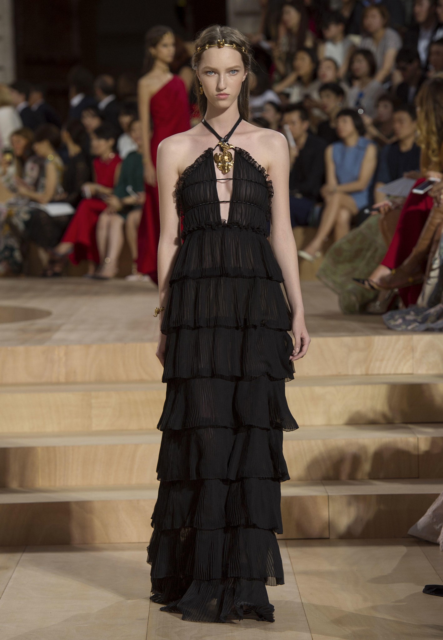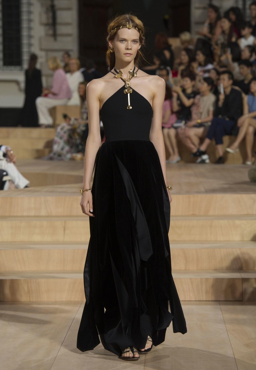 Batizada de “Mirabilia Romae”, a coleção tem vários looks em preto: capas, transparências, faixas de renda e sandálias à gladiador – tudo arrematado com acessórios dourados de Alessandro Gaggio. Depois foram apresentadas as peças em vermelho – a cor-fetiche da Valentino – com mais patchworks que lembram mármore.