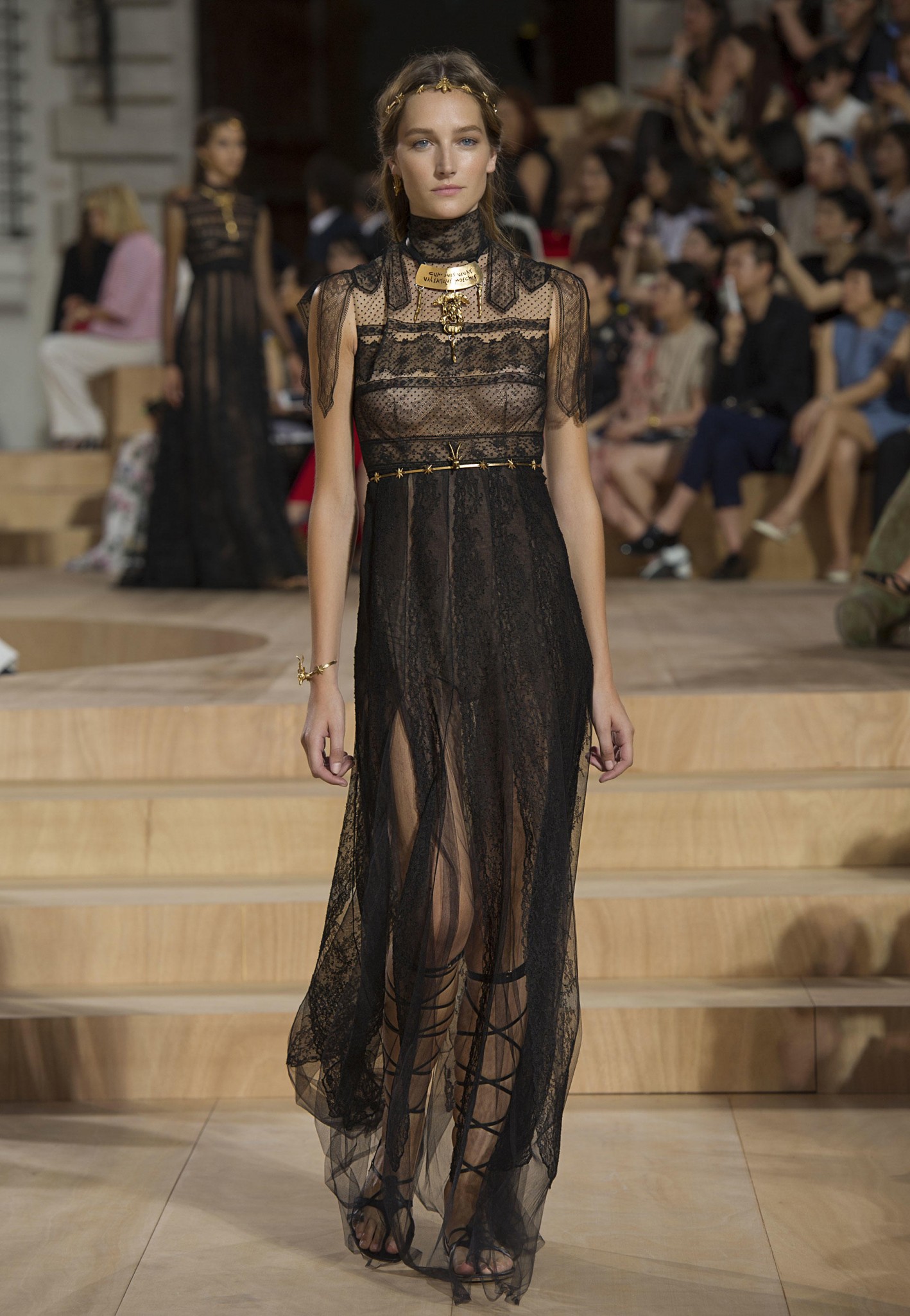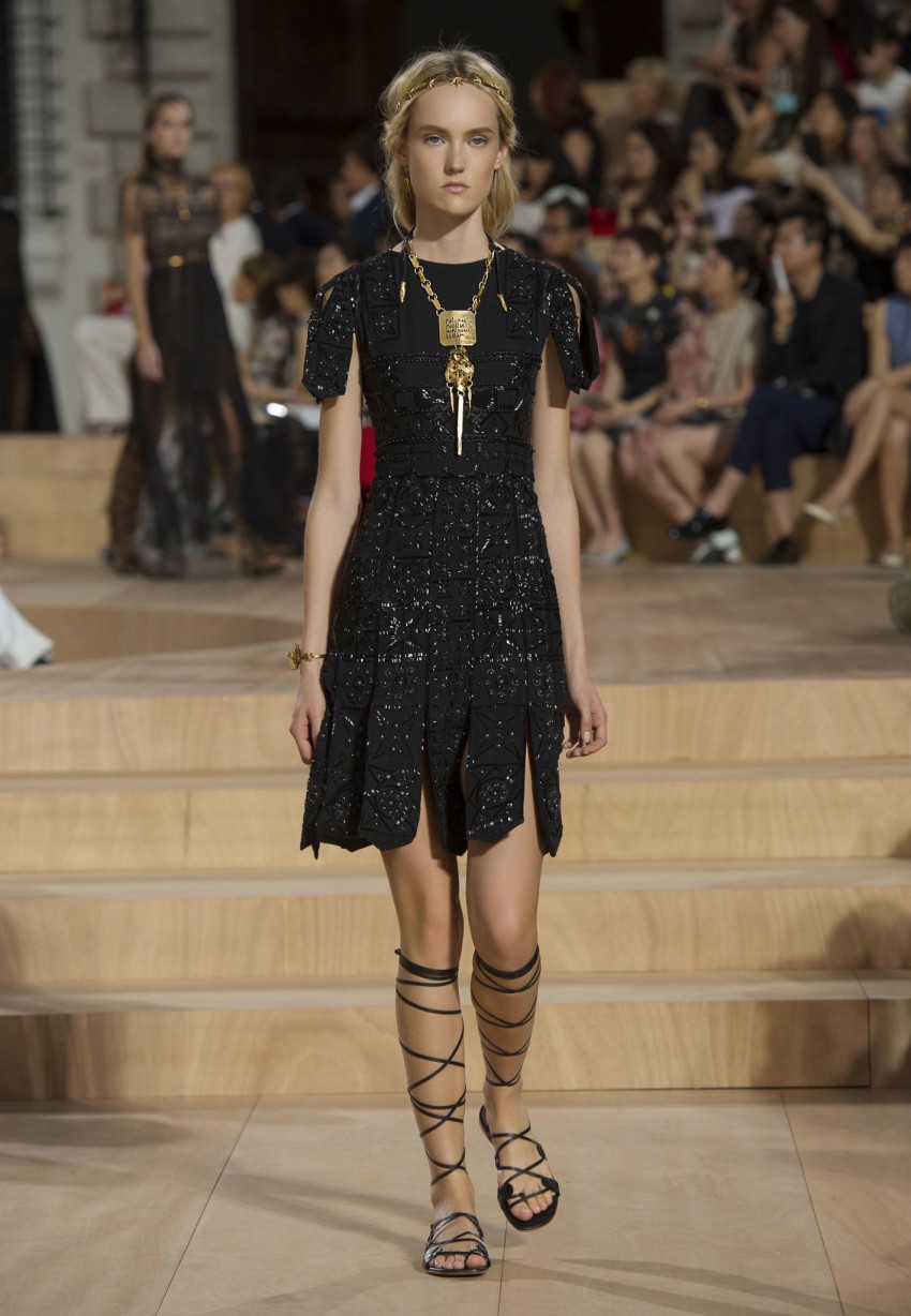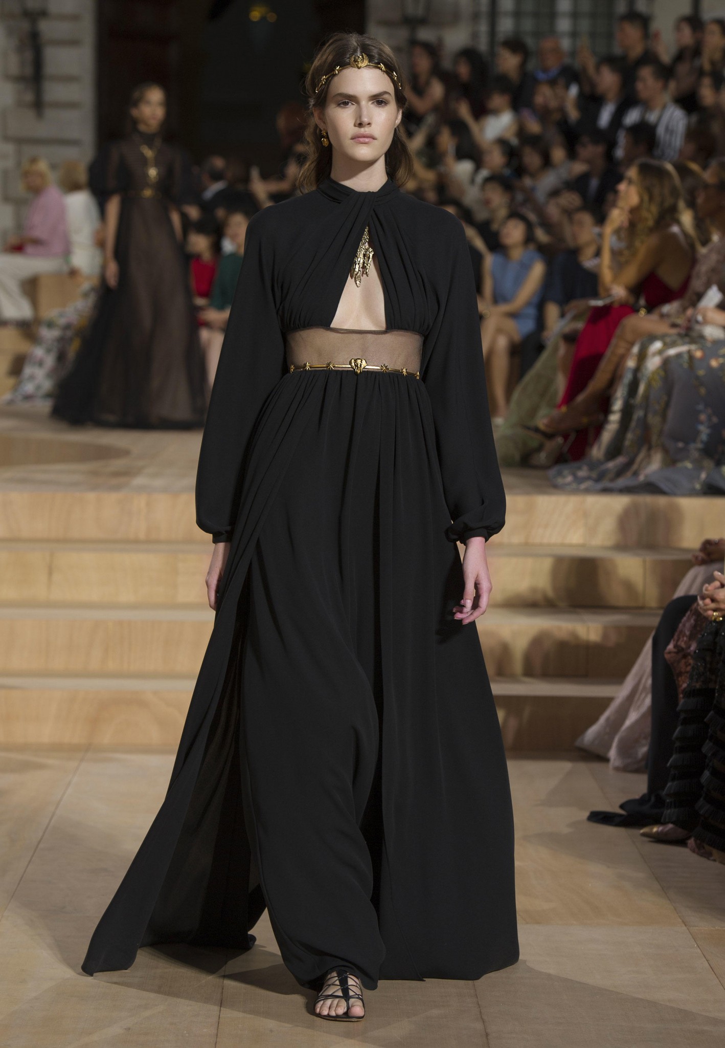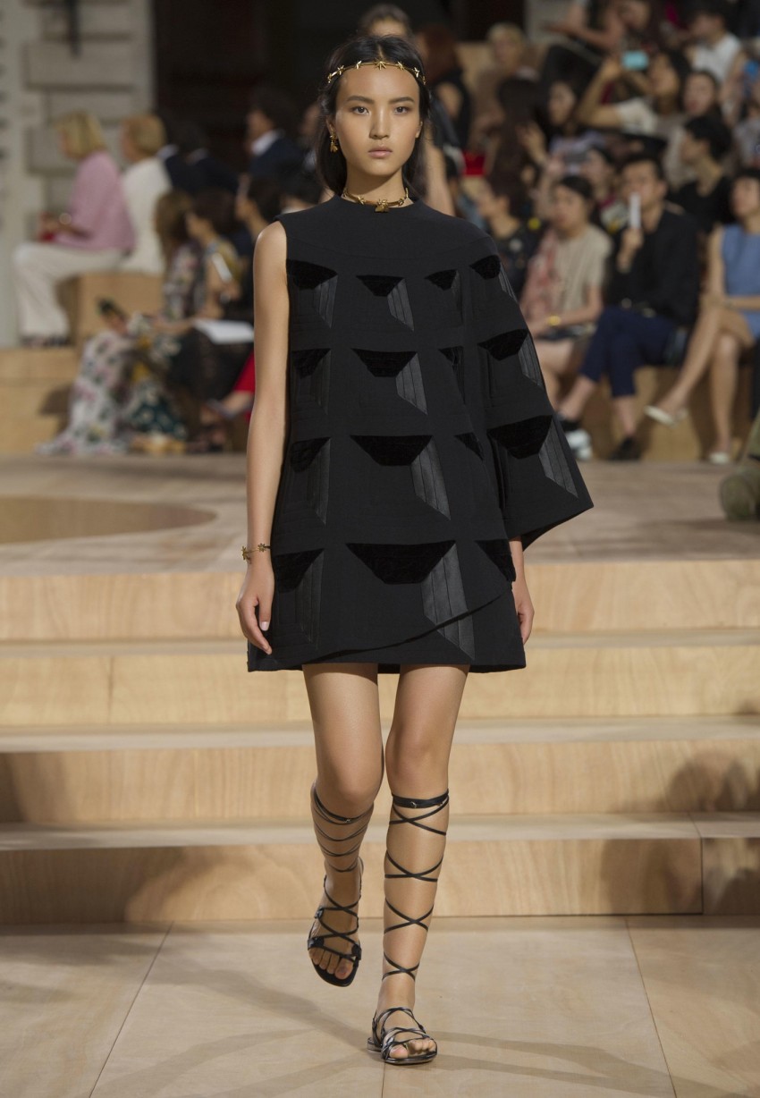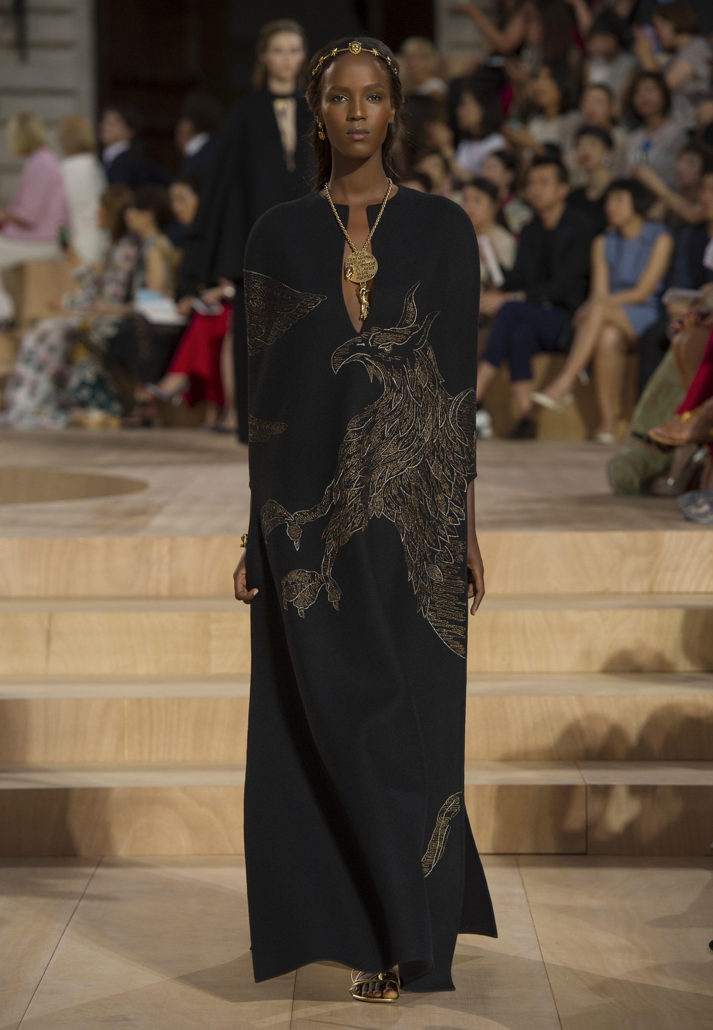 Batizada de “Mirabilia Romae”, a coleção tem vários looks em preto: capas, transparências, faixas de renda e sandálias à gladiador – tudo arrematado com acessórios dourados de Alessandro Gaggio. Depois foram apresentadas as peças em vermelho – a cor-fetiche da Valentino – com mais patchworks que lembram mármore.