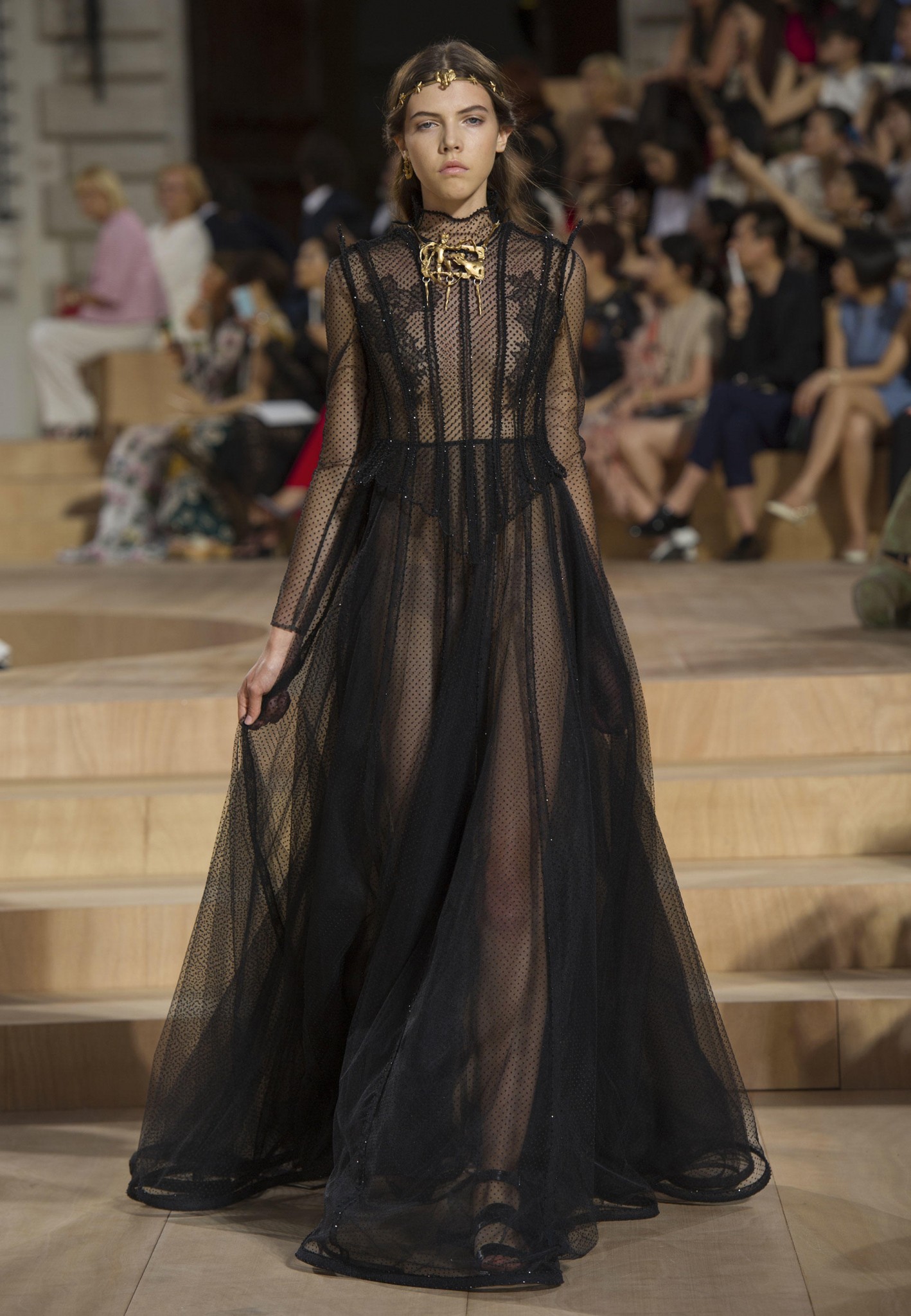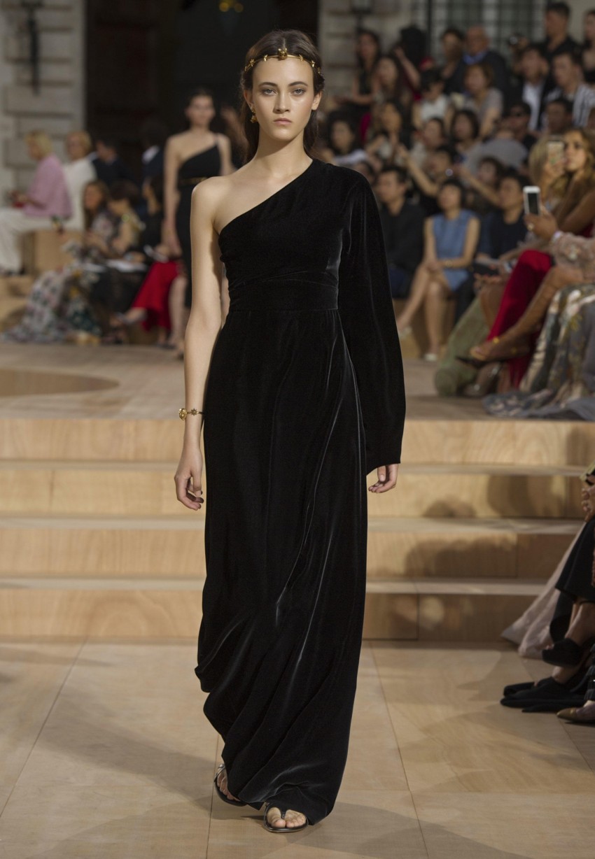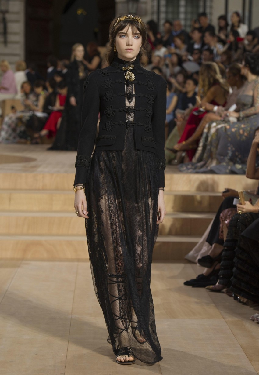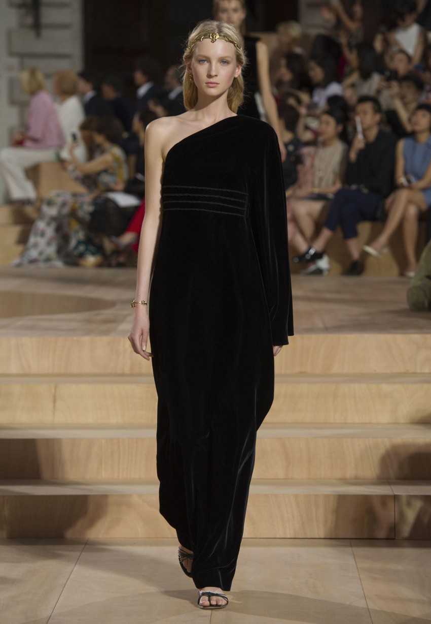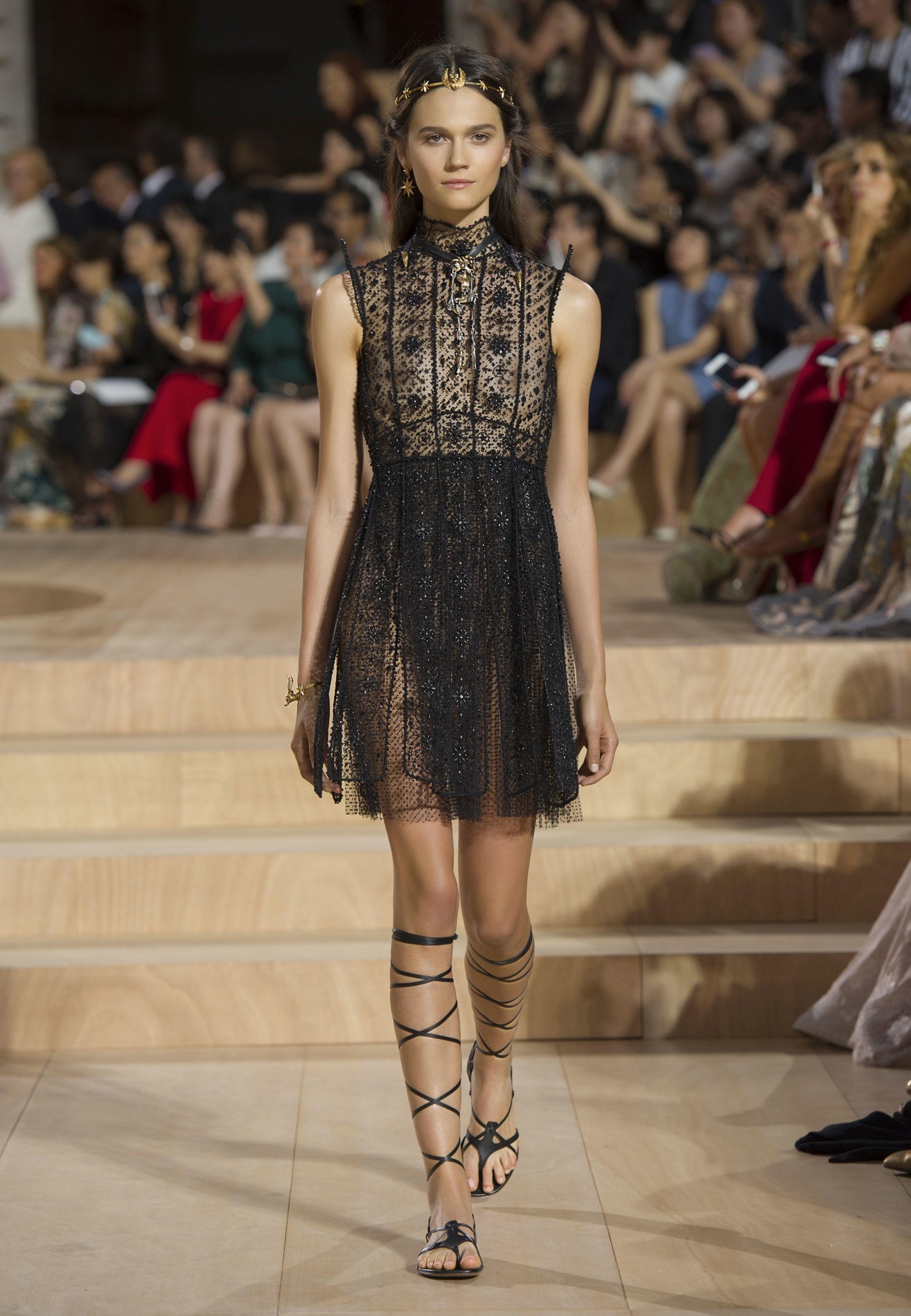Batizada de “Mirabilia Romae”, a coleção tem vários looks em preto: capas, transparências, faixas de renda e sandálias à gladiador – tudo arrematado com acessórios dourados de Alessandro Gaggio. Depois foram apresentadas as peças em vermelho – a cor-fetiche da Valentino – com mais patchworks que lembram mármore.