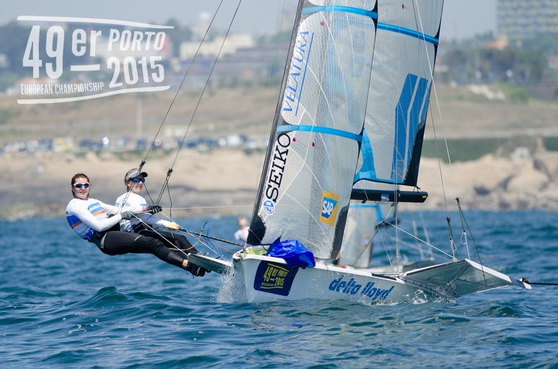 A dupla holandesa Annemiek Bekkering-Annette Duetz lidera classificação geral após o primeiro dia de regatas da Classe 49erFX, do Campeonato Europeu 49er Porto 2015.