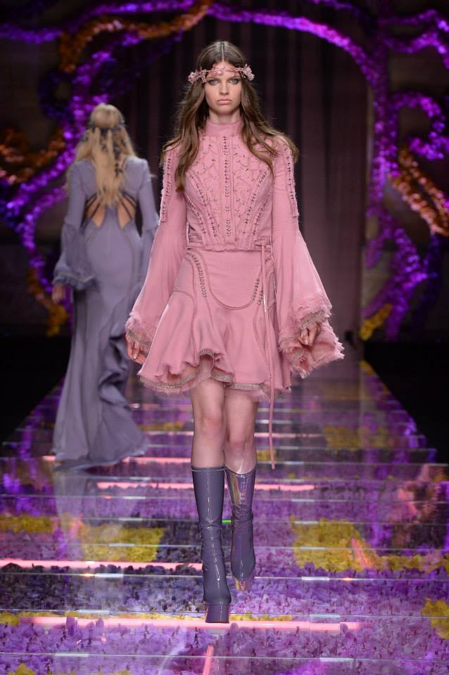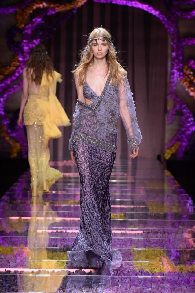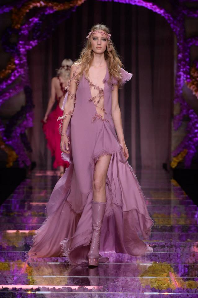 Foi numa passerelle decorada com milhares de orquídeas coloridas, que decorreu o desfile inverno 2016 de alta costura, em Paris. O clima de paz e amor foi o mote para a nova coleção da marca italiana, que incluiu vestidos curtos, com decotes assimétricos e espartilhos. Donatella Versace, diretora criativa da maison, apostou ainda nas rendas e transparências.