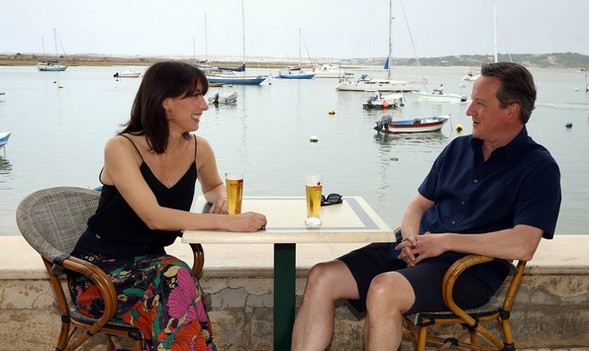 Mais uma vez o primeiro-ministro britânico escolheu o Algarve para passar as férias de verão em família. David Cameron foi “apanhado” na companhia da mulher, Samantha, a beber imperiais numa esplanada do Alvor.
