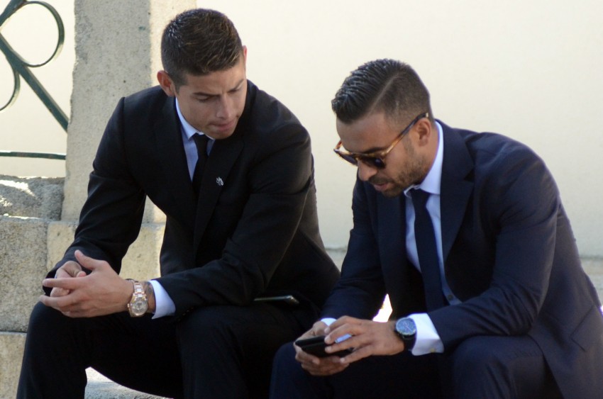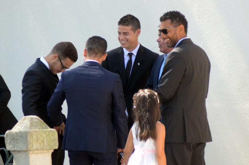 James Rodríguez viajou para a Invicta para assistir ao enlace do “super agente” na companhia de Cristiano Ronaldo e sem a mulher.
