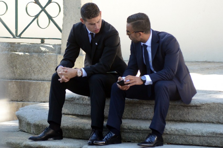James Rodríguez viajou para a Invicta para assistir ao enlace do “super agente” na companhia de Cristiano Ronaldo e sem a mulher.