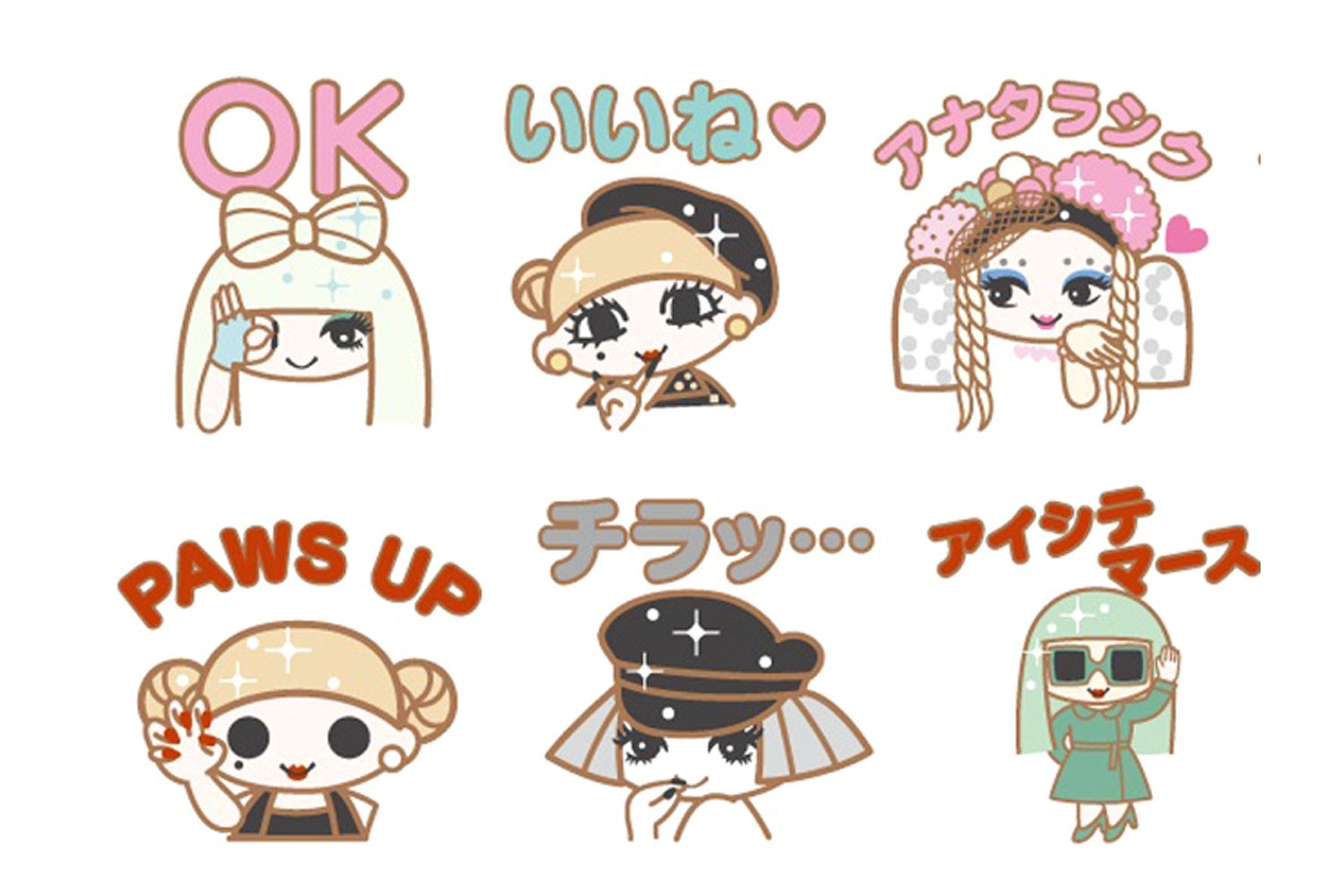 Os stickers de Lady Gaga são a nova moda no Japão. Os divertidos desenhos são da autoria do artista que hoje é responsável pelos traços da gata Hello Kitty, Yuko Yamaguchi. Estão disponíveis seis desenhos da estrela para a rede social japonesa Line.