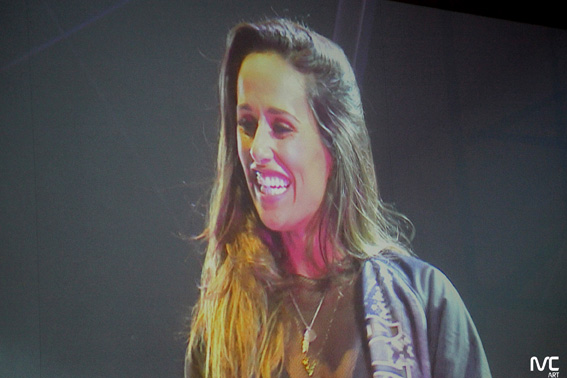 Rita Pereira no corredor técnico que atravessa a plateia, causando grande alvoroço no público e algum trabalho extra aos seguranças.