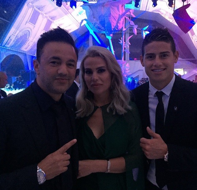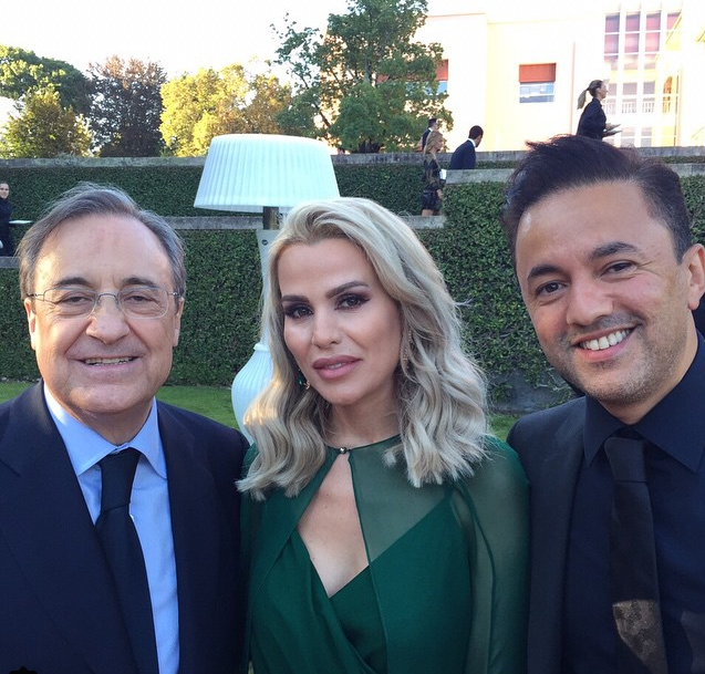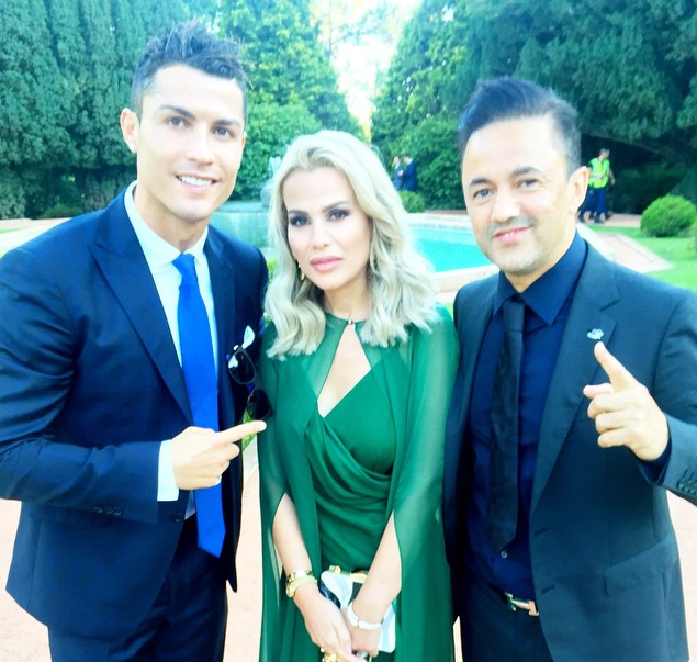 O artista e a mulher, a estilista Laila Aziz, posaram ao lado do presidente do Real Madrid, Florentino Pérez, James Rodríguez e como não poderia deixar de ser… Cristiano Ronaldo.