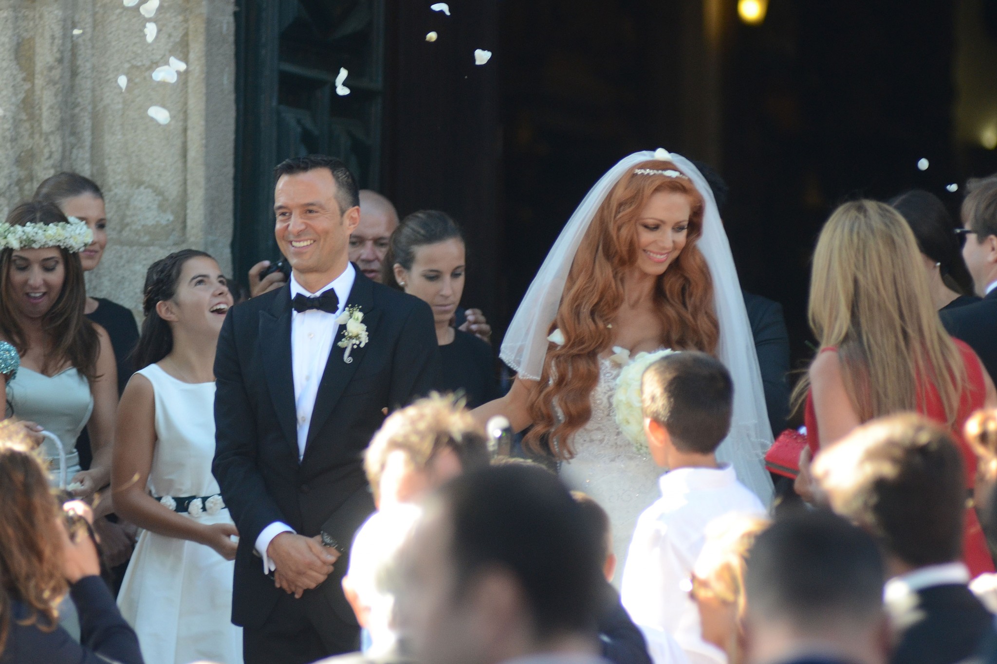 As filhas dos noivos, Bárbara e Beatriz, também tiveram um papel importante na cerimónia, sendo que foram elas a carregar as alianças dos pais.