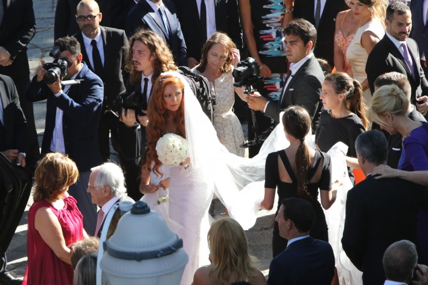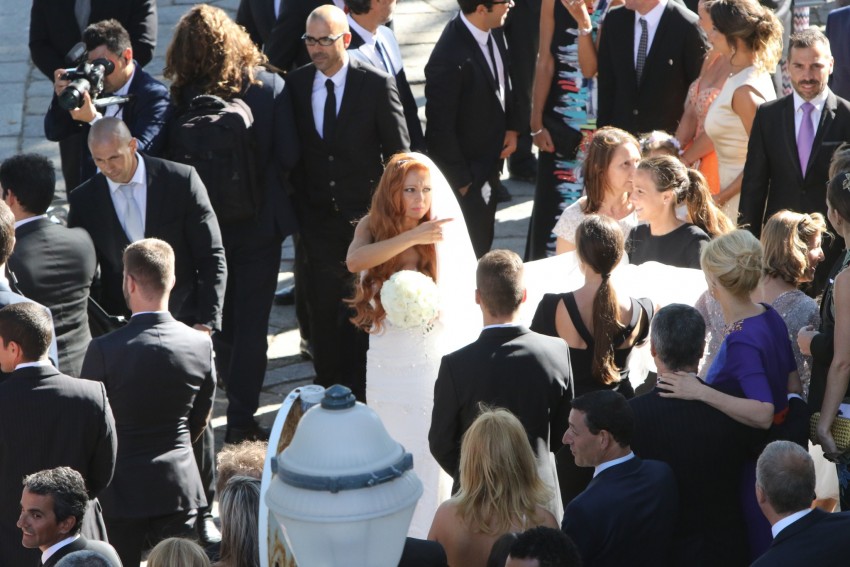 A empresária optou pela cor tradicional: branco. O vestido, justo, tinha pormenores em pedraria e renda, tal como se vê em muitas criações de estilistas internacionais, acabando por não surpreender. O peito da noiva era sustentado por duas alças finas, deixando parte das costas a descoberto.