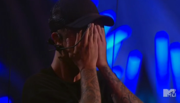 Depois da atuação o público aplaudiu em força, o que deixou o jovem cantor emocionado no palco que já não pisava há cinco anos. Sem conseguir conter as lágrimas, Bieber foi consolado por Mile Cyrus que notou a emoção do colega: “Bem Justin, eu já passei por isso e sei o que estás a sentir. Tens todo o direito de te sentires assim”, disse a cantora, responsável por comandar a gala.