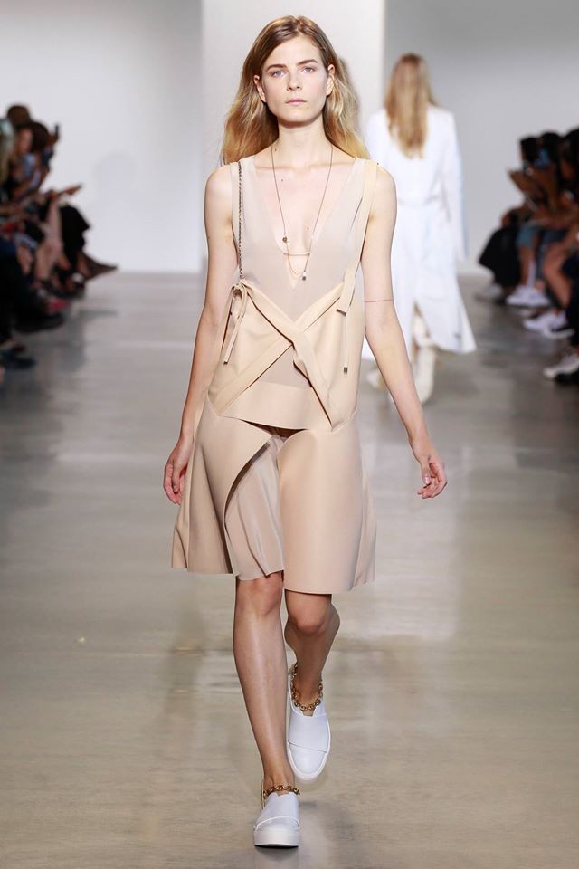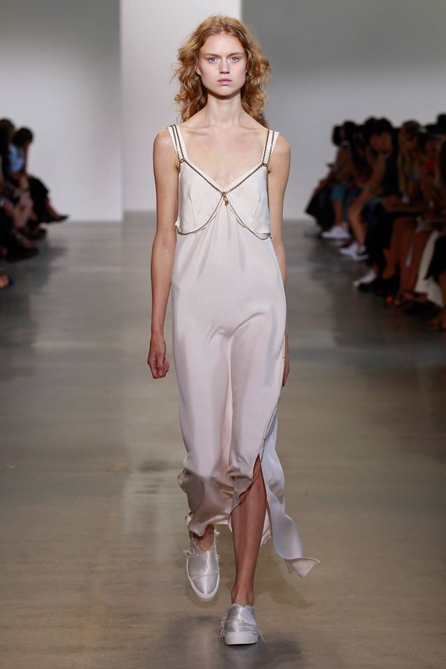 O slip dress foi o grande protagonista da coleção primavera/verão 2016, apresentada na semana da moda de Nova Iorque. Assim o diretor criativo da marca, Francisco Costa, inspirou-se no lado cool dos anos 90 e conjugou os vestidos com ténis.