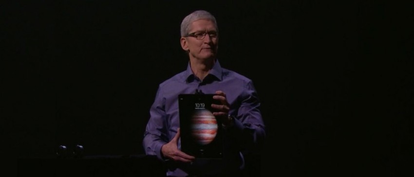 O iPad Pro surge o ecrã maior, como tinha sido anunciado, com 12,9 polegadas, 5,6 milhões de pixéis, 10 horas de autonomia e 80% mais rápido do que os portáteis normais. O aparelho vai ser lançado com dois novos acessórios: um teclado e uma caneta (denominada Apple Pencil). Haverá também uma aplicação do Microsoft Office para os usuários do equipamento.