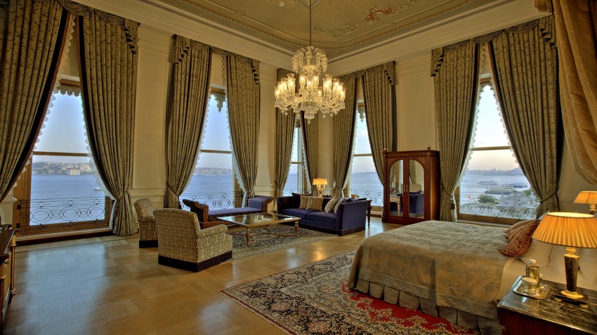 Suite do Sultão, Ciragan Palace Kempinski Istanbul, Istambul (Turquia) – Outrora palácio, o Ciragan Palace Kempinski é atualmente um hotel de luxo. Com uma
