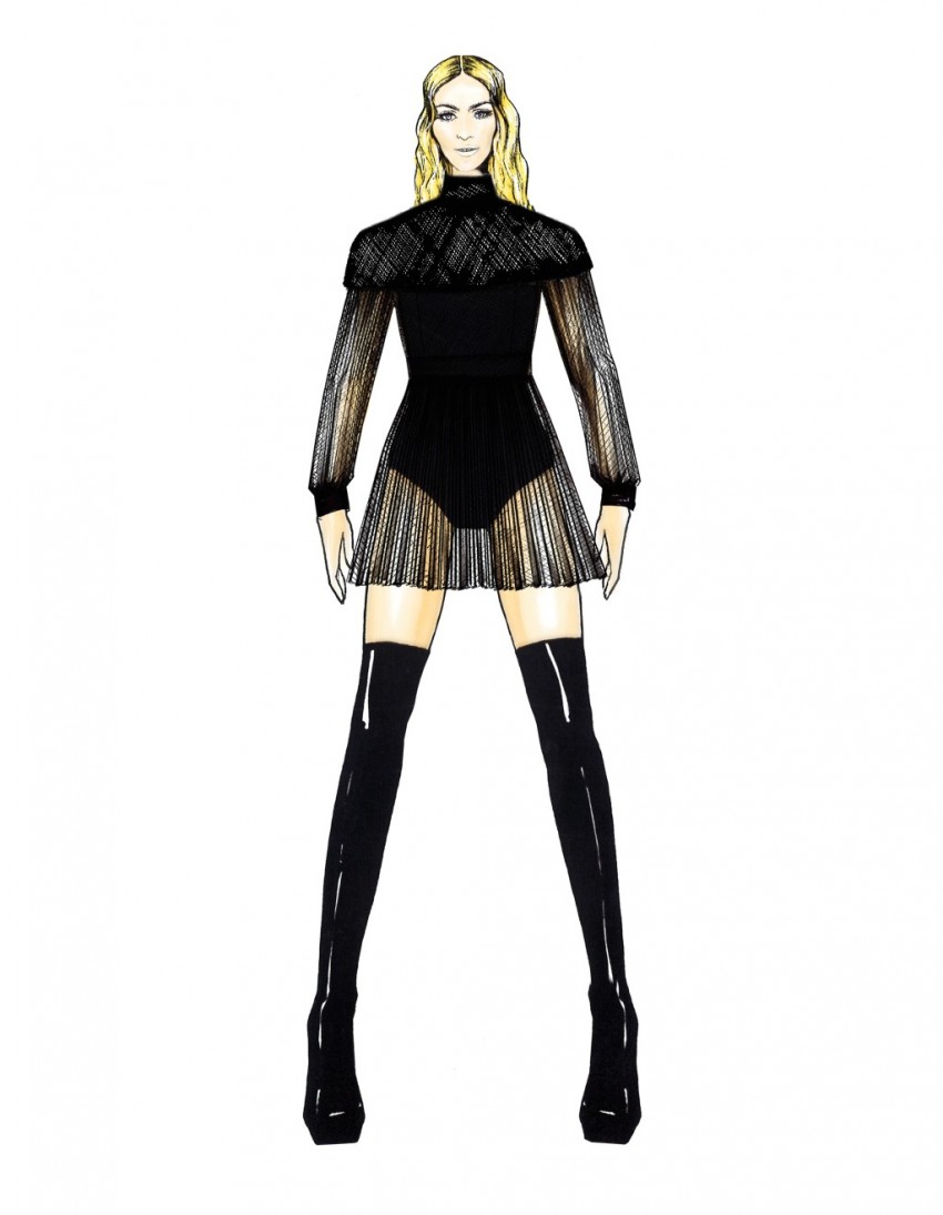 Madonna deu o pontapé de saída da sua nova tournée, Rebel Heart, na última quarta-feira. A rainha da pop, como seria de esperar, dispões de um guarda-roupa de luxo, que inclui criações de conhecidos estilistas, como Prada, Miu Miu, Gucci, Fausto Puglisi, Alexander Wang e Moschino. Alguns desenhos dos modelos foram divulgados pelos criadores.