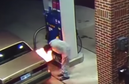 Homem usou um isqueiro para matar uma aranha numa bomba de combustível