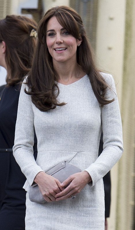 Mais uma vez, a mulher de William destacou-se pela sua elegância. Para a ocasião Kate usou um vestido cinzento claro da marca inglesa The Fold, que custa 494 euros.