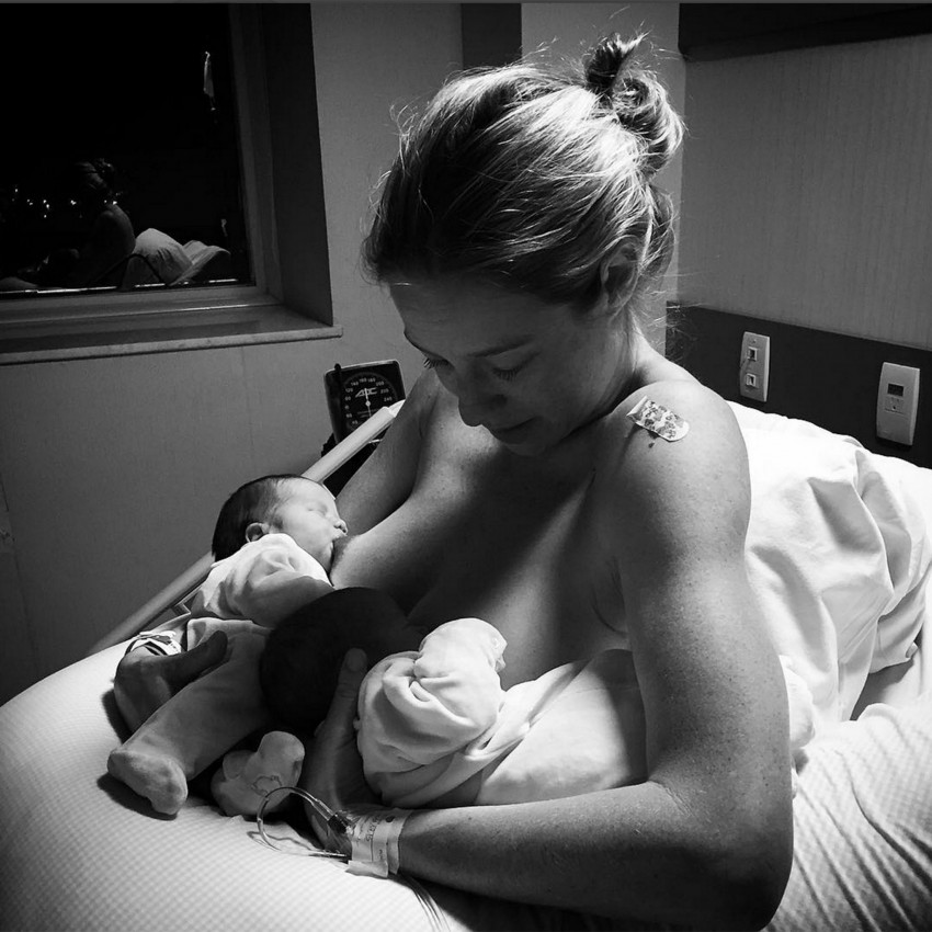 Pedro Scooby, marido da atriz, não resistiu de felicidade e publicou uma foto nas redes sociais onde a Luana aparece na maternidade, horas depois do parto, a amamentar os filhos.