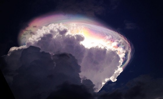 Trata-se de um fenómeno meteorológico extremamente raro, descrito pelos especialista como “nuvem iridiscente”. A luminosidade colorida é causada pelo facto da luz do sol ser refretada, na nuvem, por pequenas gotas de água e cristais de gelo, explicou o meteorologista Eladio Solano ao ABC News.
