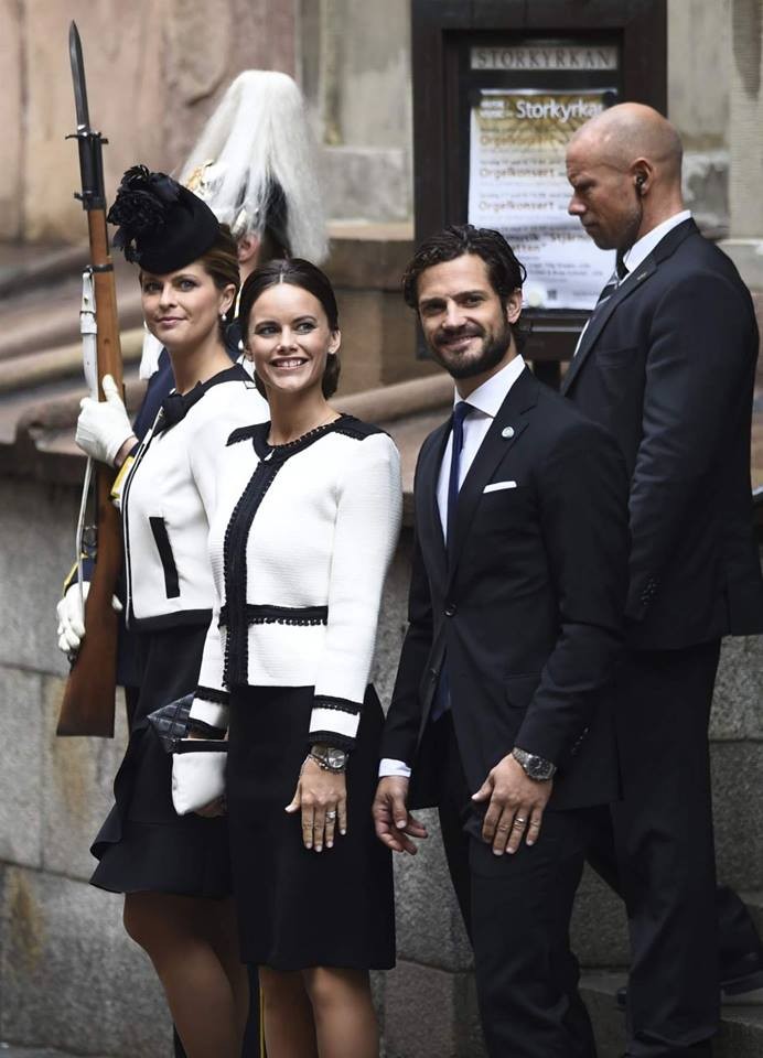A família real da Suécia esteve reunida esta terça-feira, dia 15, para a abertura do parlamento e as princesas Madalena e Sofia acabaram por centrar as atenções. Isto por as cunhadas optaram por usar um look muito semelhante: saia preta e casaco branco com pormenores em preto.
