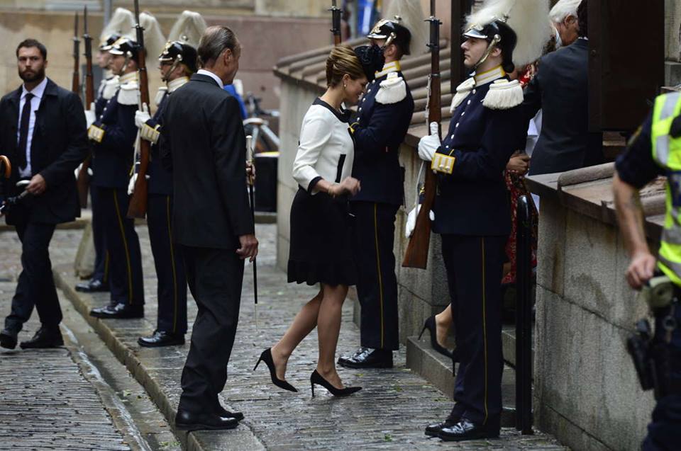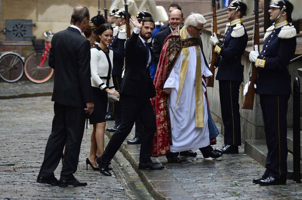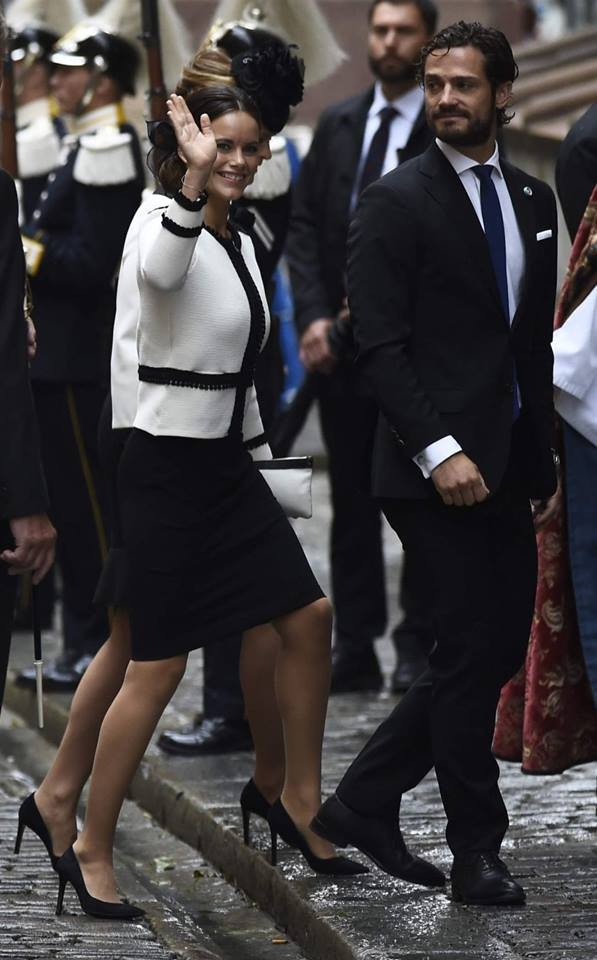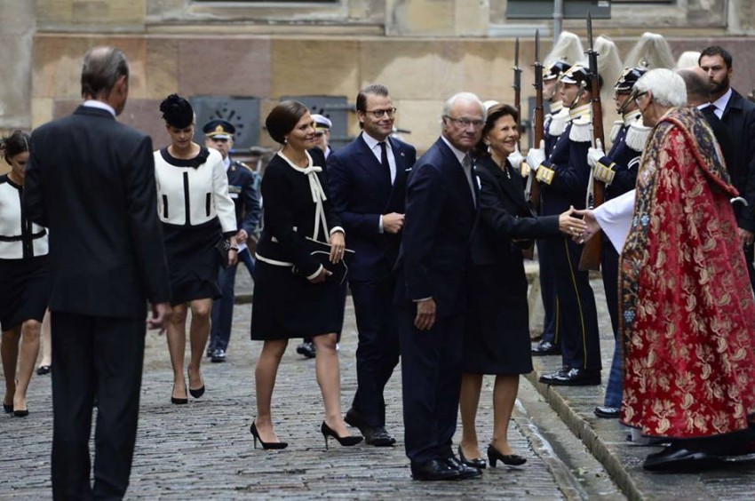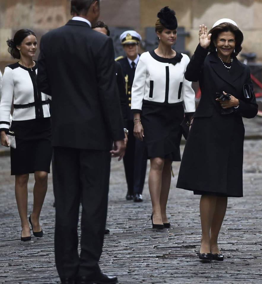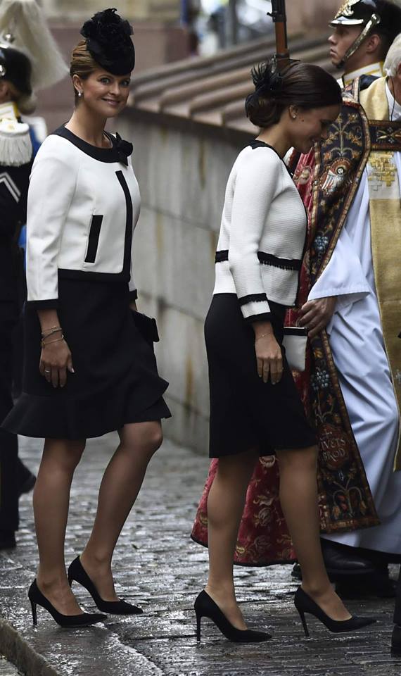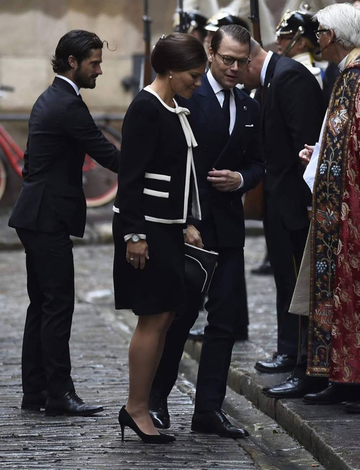 Também a princesa Victoria, herdeira ao trono, optou por um conjunto preto e branco, mas a cor mais escura dominava o visual. Ao que parece as três princesas estavam bem coordenadas, no que diz respeito ao guarda-roupa.