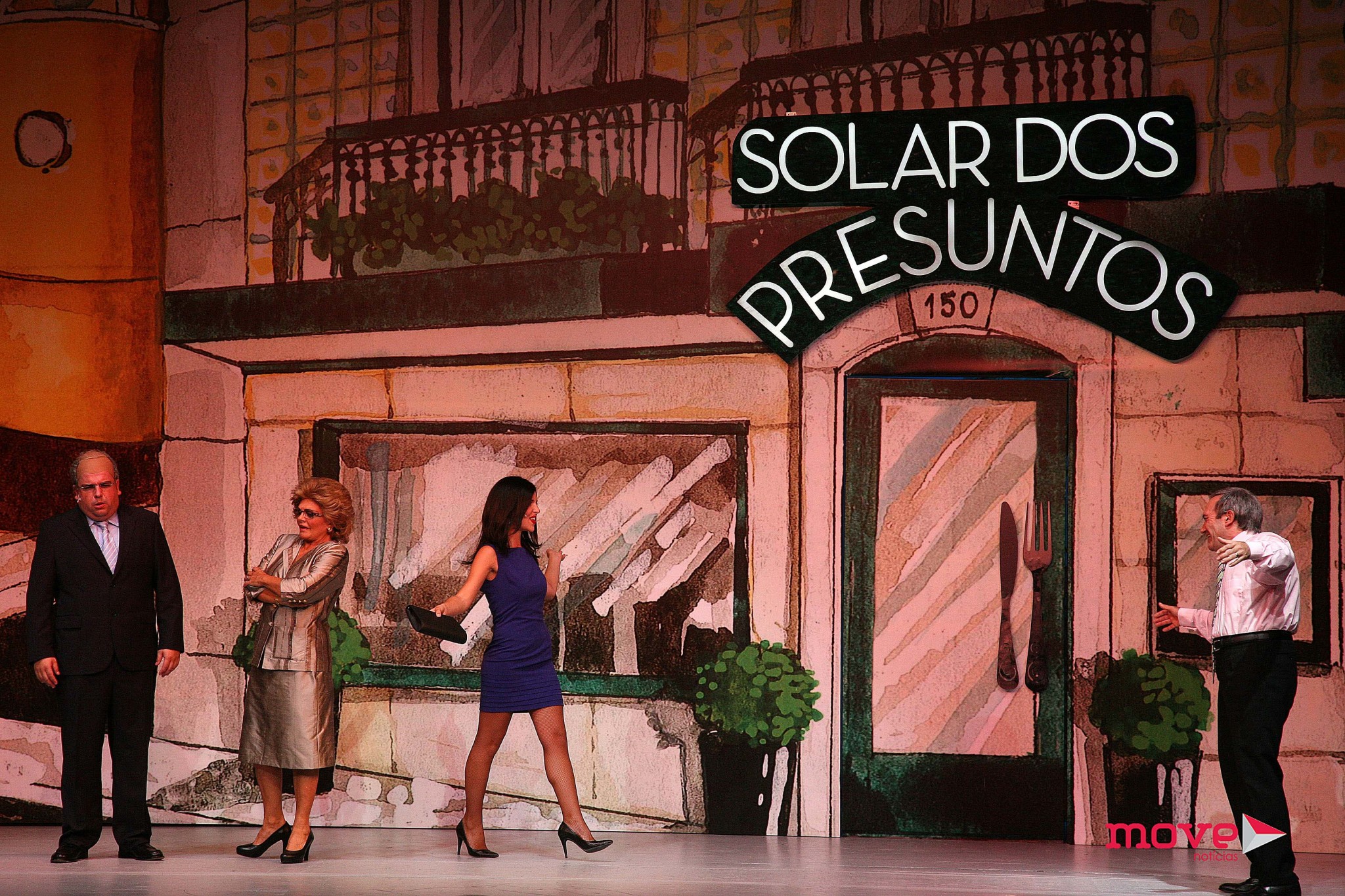 Numa ode aos tempos modernos, revisitando lugares como o estabelecimento prisional de Évora ou o Solar dos Presuntos, La Féria faz uma crítica mordaz ao Governo, ao futebol, sem esquecer o povo português: “os bananas”.