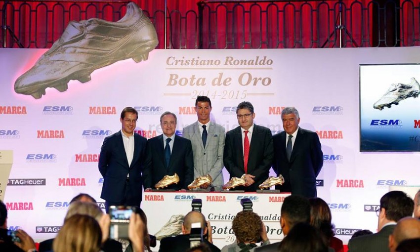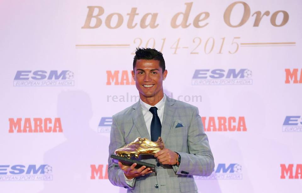 O internacional português recebeu o prémio correspondente à época 2014/15, tornando-se no primeiro futebolista a ostentar quatro troféus de melhor marcador da época nos campeonatos europeus.