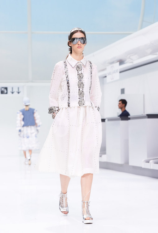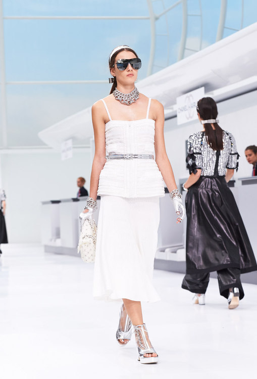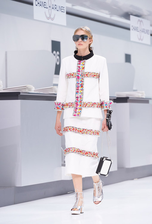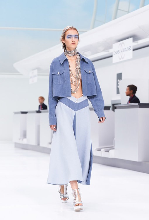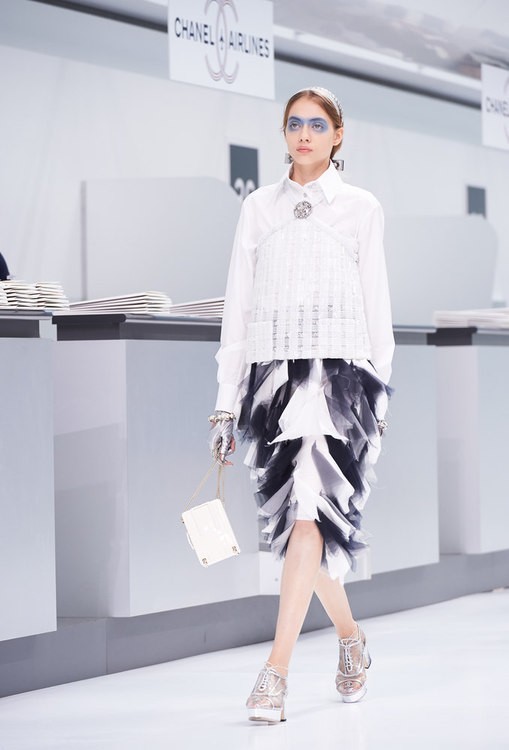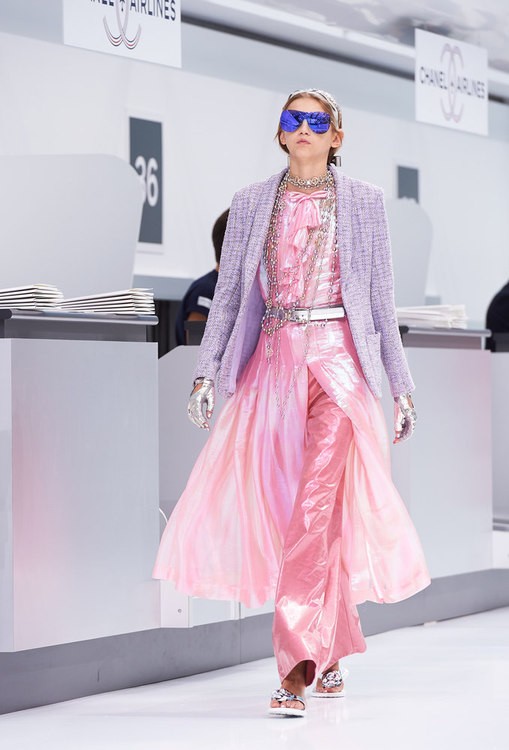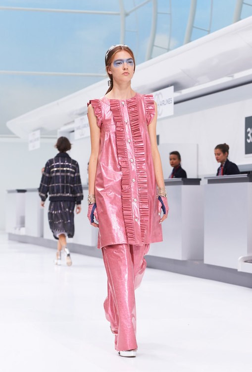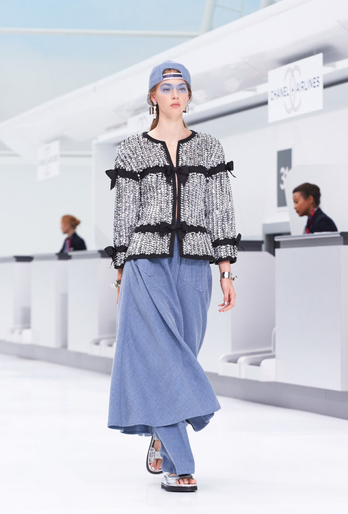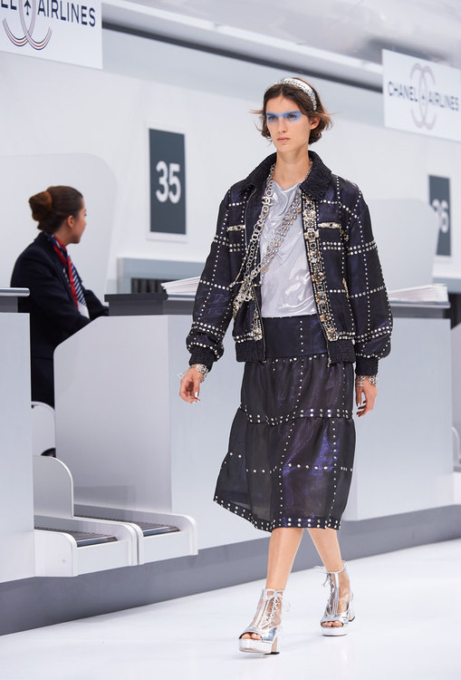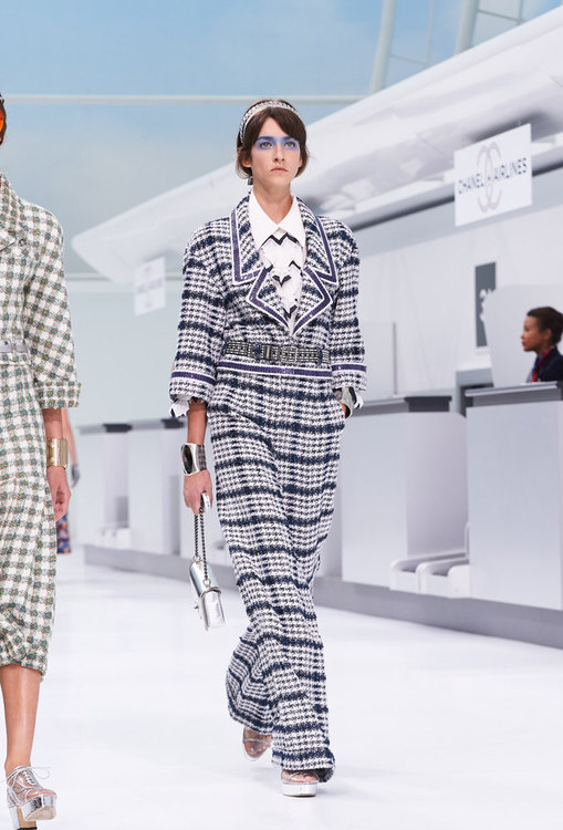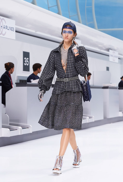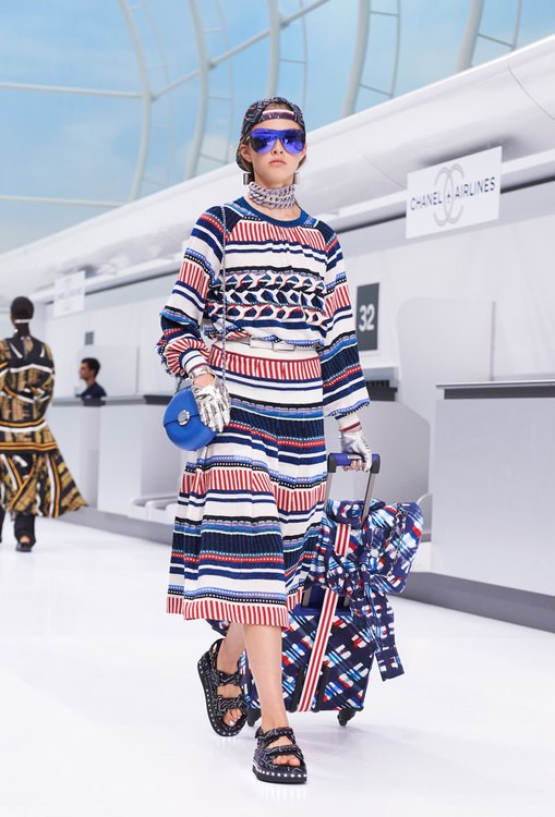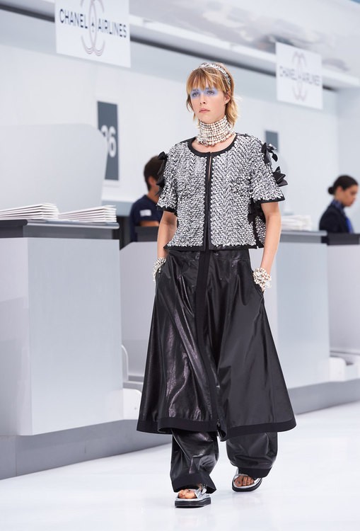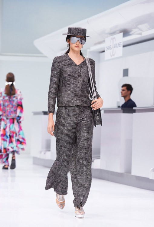 Na passerelle alguns modelos desfilaram com malas de rodinhas com looks elegantes a que a Chanel já nos habituou. No entanto, nesta nova coleção também houve espaço para o conforto e foram apresentados visuais mais informais. Desta forma, os manequins pareciam prontos para enfrentar uma viagem com turbulências, mas sem perder o estilo.