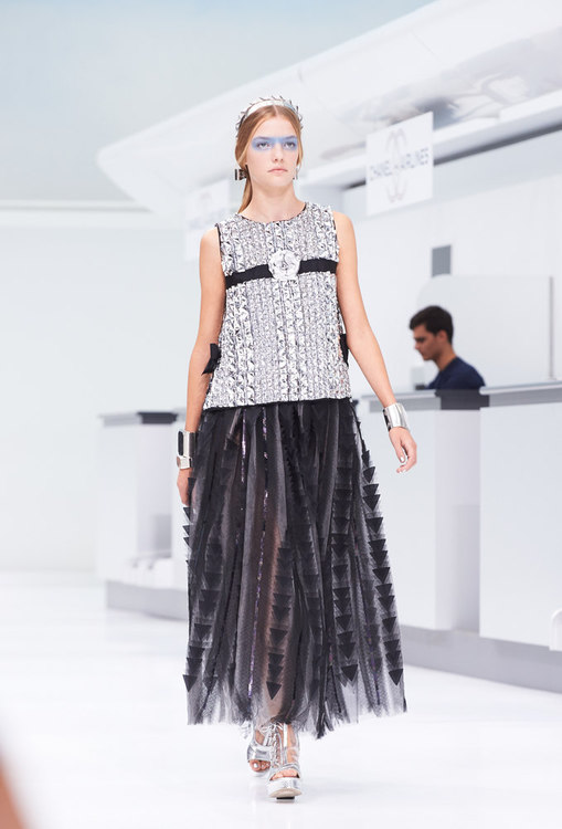 Karl Lagerfeld não para de inovar. Depois de um casino, um bar e até um protestos de rua, o diretor criativo da Chanel usou o aeroporto como cenário do desfile primavera/verão 2016, na semana da moda de Paris, oferecendo uma viagem ao mundo fashion da marca.
