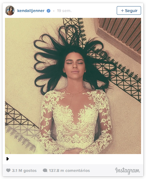 Mas se tivéssemos que coroar as rainhas da rede social, sem dúvida que as irmãs Kardashians arrecadavam o título. Isto porque no top das fotografias com mais “likes” surgem três membros do clã. Kendall Jenner destronou Kim, com uma imagem na qual aparece vestida de branco, com os olhos fechados e com os cabelos a formarem corações. A fotografia reúne 3,2 milhões de “gostos”.