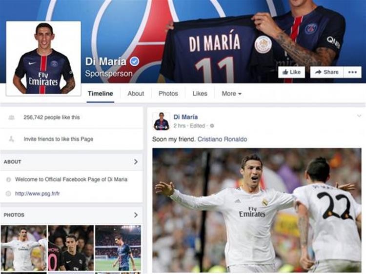 Uma foto publicada na página de Facebook “Ángel Di María” está a dar que falar. A imagem, que surge na página associada ao jogador do Paris-Saint Germain, mostra Di María e Cristiano Ronaldo juntos. “Em breve meu amigo”, lê-se na legenda. Como seria de esperar, esta publicação alimentou os rumores que davam conta que o internacional português estava a caminho do clube de Paris.