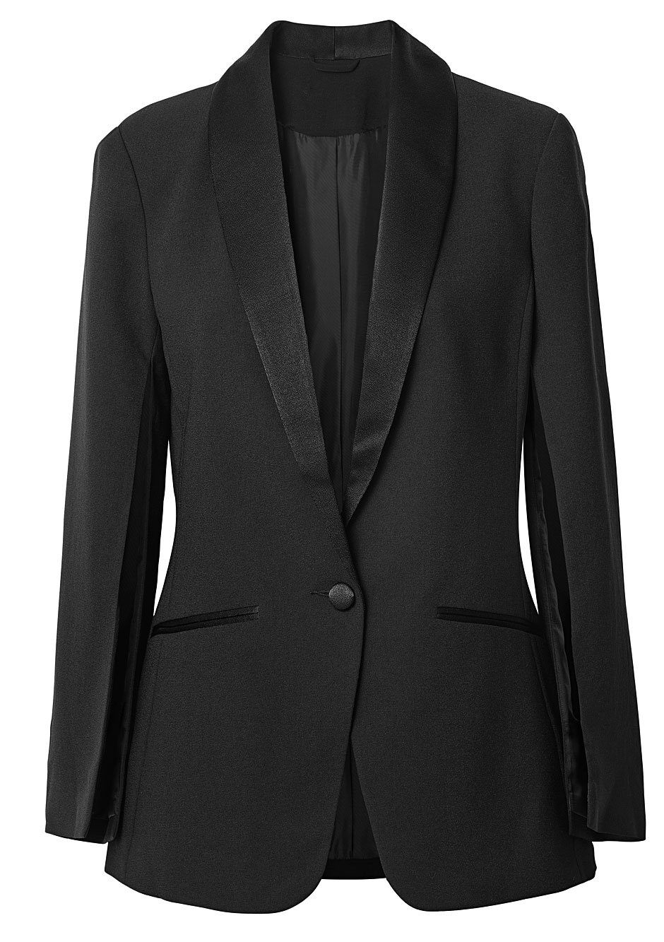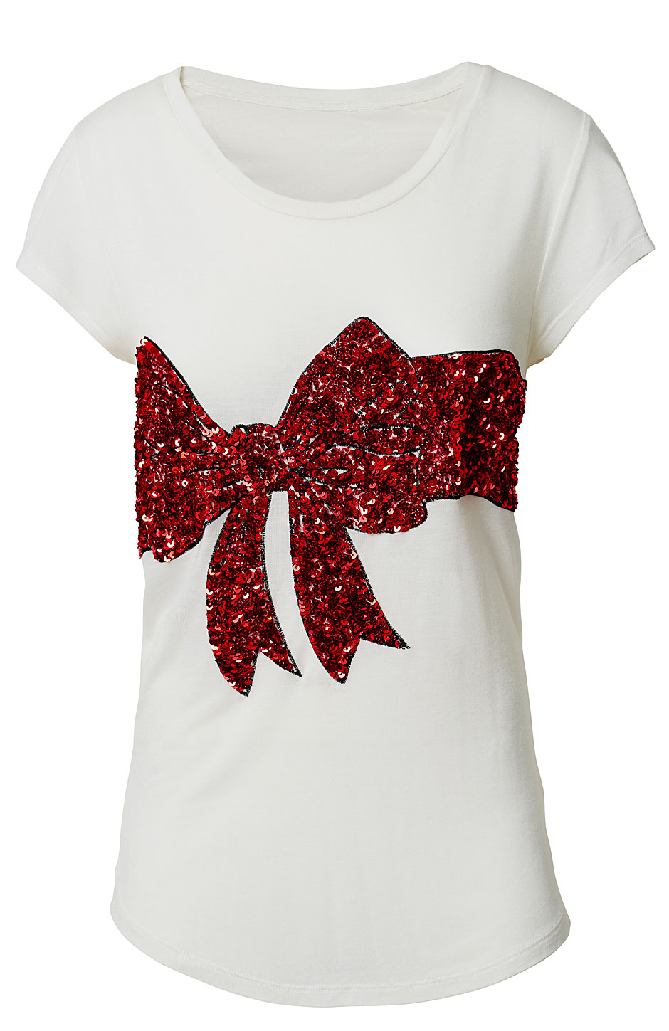 A coleção inclui peças como vestidos vermelhos, tuxedos com mangas abertas, uma t-shirt com laços bordados em lantejoulas, uma minissaia preta de franjas e também a camisola perfeita de natal.